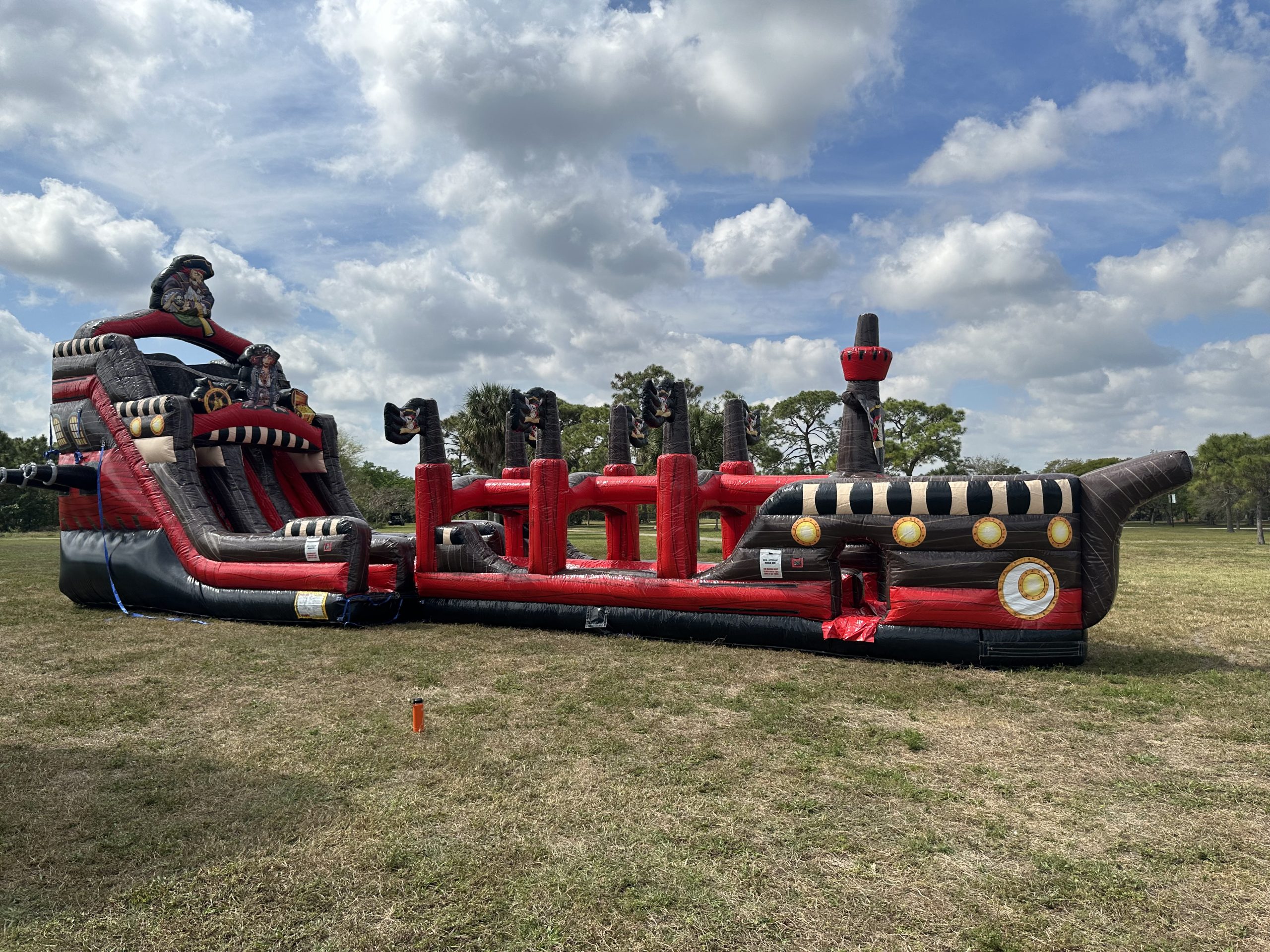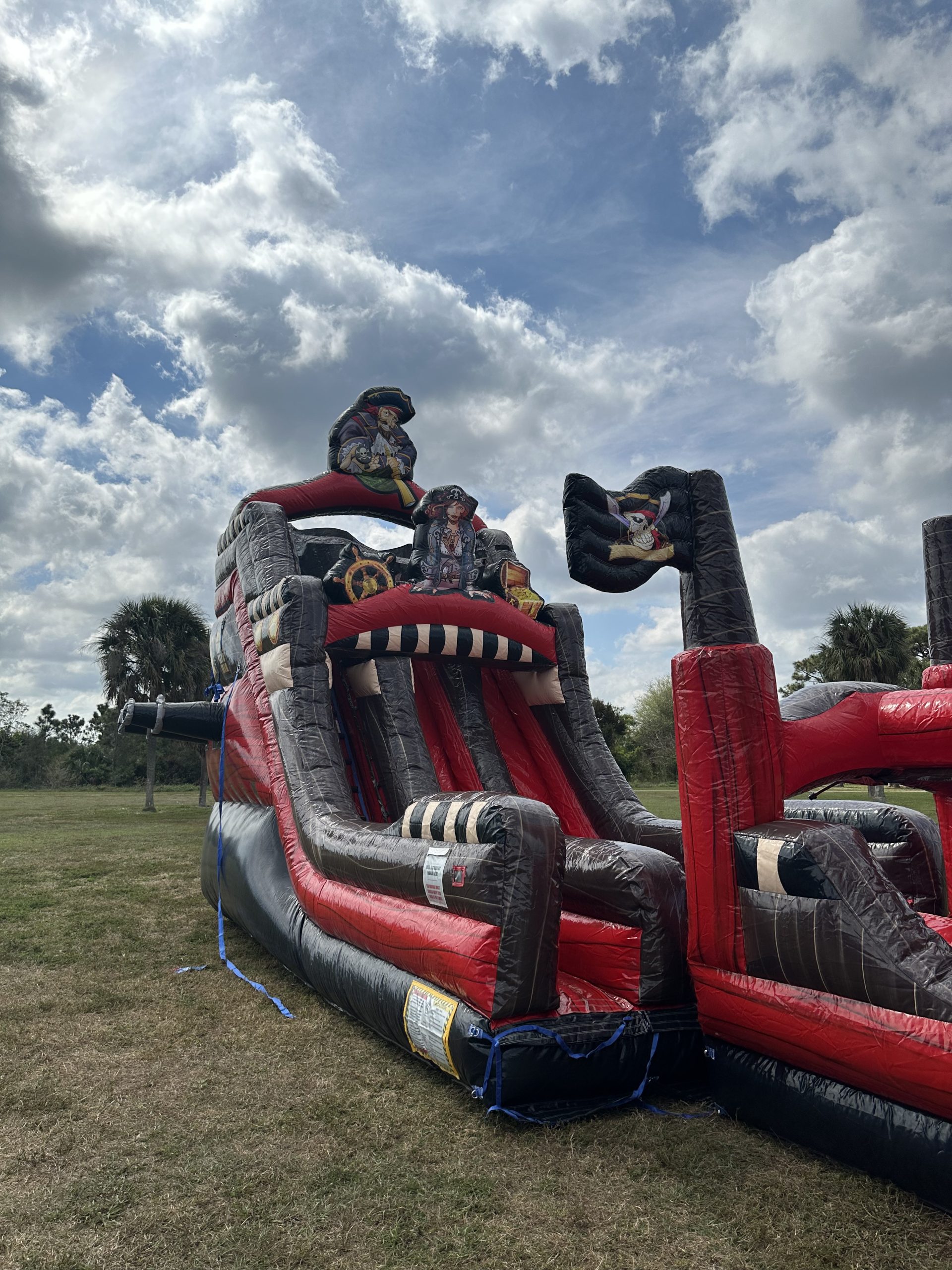 Ahoy matey! Prepare for a splashy adventure with the Black Pearl Water Slide! Standing tall at 25 feet, this dual-lane inflatable wonder transforms any event into an exhilarating water park experience. Race your friends down its slick, long lanes, and make a big splash at the end. Perfect for cooling off on hot days and guaranteed to be the highlight of any party or gathering!