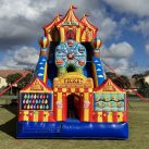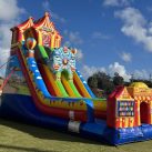 Bring the excitement of the midway to your next event with our 26′ Carnival Themed Dry Slide, one of South Florida’s most eye-catching and thrilling inflatable attractions! Perfect for school carnivals, church events, corporate parties, birthdays, and neighborhood block parties, this giant slide delivers nonstop fun for all ages. Featuring bold carnival colors, fun graphics, and a steep, fast sliding lane, this dry slide is guaranteed to draw a crowd and keep guests entertained for hours.