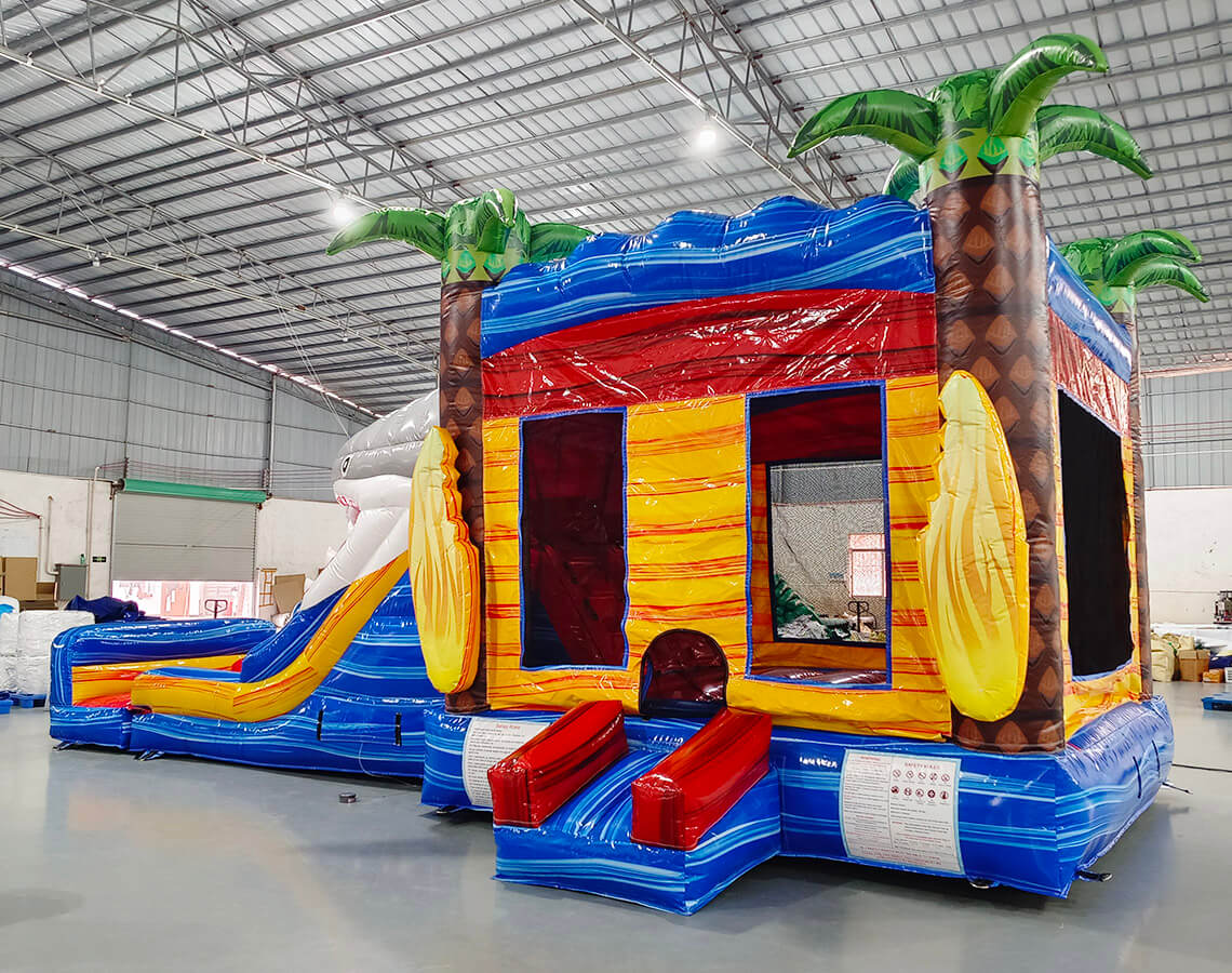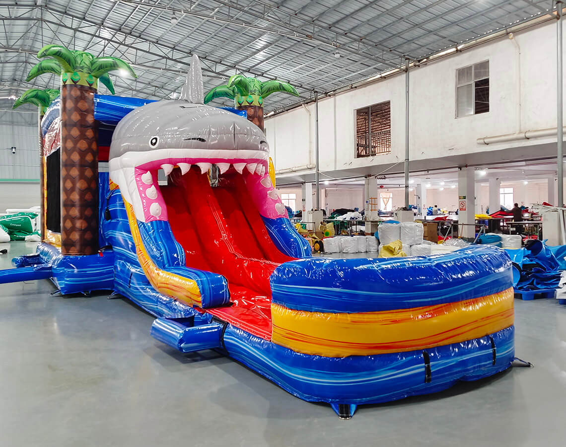 Get ready for an epic adventure with the 4 in 1 Shark Island Combo! This rental combines the thrill of a bounce house, slide, climbing wall, and basketball hoops all in one, shark-themed paradise. Perfect for parties, it promises hours of fun and excitement for kids seeking a wild and unforgettable experience. Dive into Shark Island and make your event the talk of the sea! Wet or Dry
