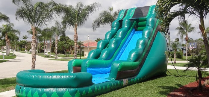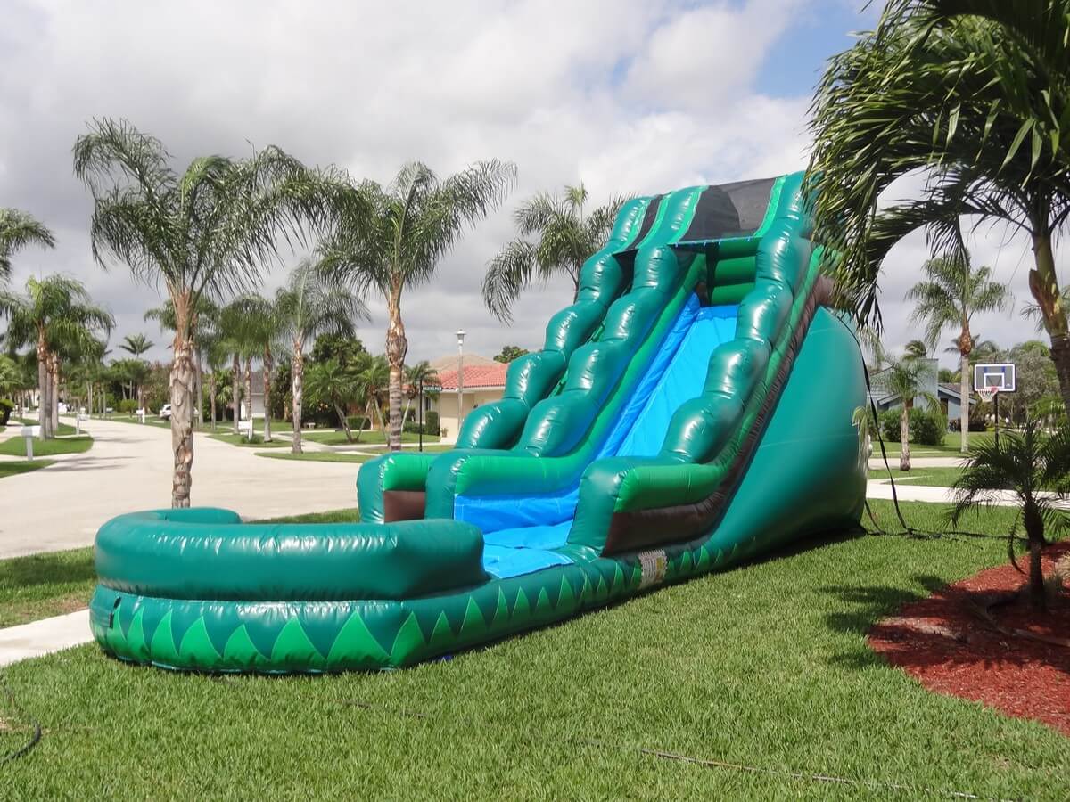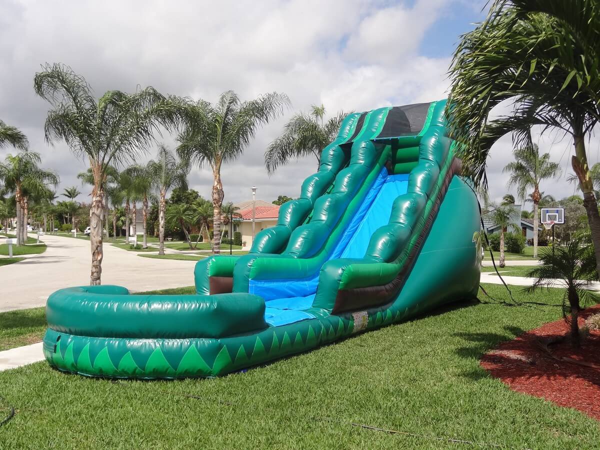 Enjoy this large beautiful Amazon themed 20ft Tall Water Slide at your next event. A super-fast ride into a nice cool pool. For ALL ages.