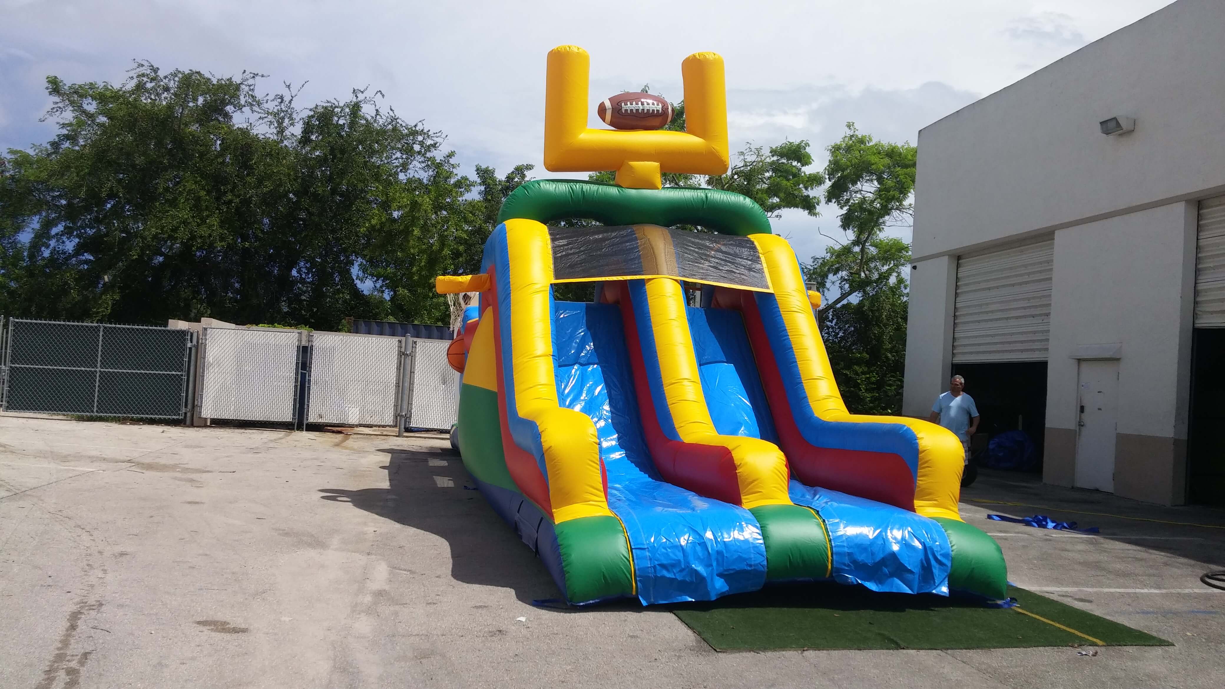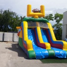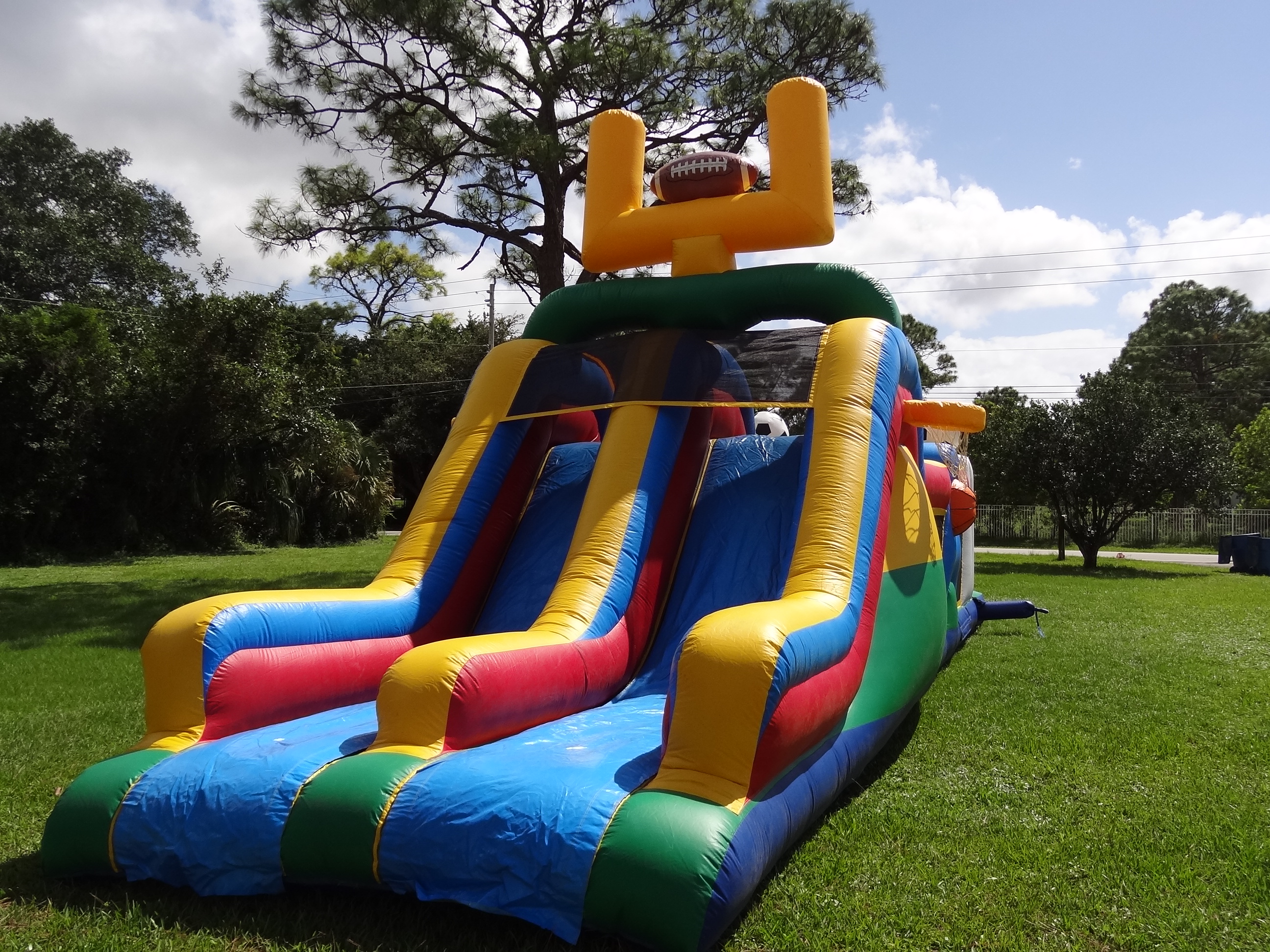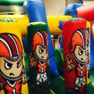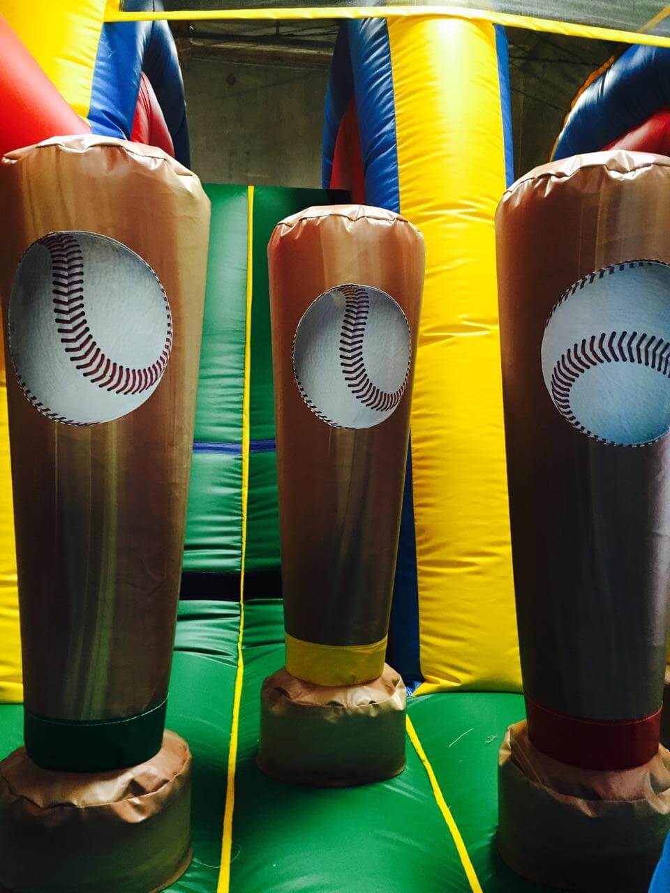 Backyard Sports Obstacle Course – This is one beautifully colored and designed obstacle course. It is forty feet long of fun and challenging obstacles. It is filled with horizontal/vertical pop ups. At the end of the course is a wall climb followed by a steep slide. This is perfect for those sports fanatic’s. We call it the Backyard Sports Obstacle Course because it is compact enough to fit small yards…..
