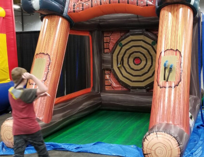 This famous western-themed attraction into a safe and fun inflatable game for players of all ages. Challenge a friend in a head to head battle with our Battle Axe Game. Comes equipped with specially designed velcro axe game pieces.