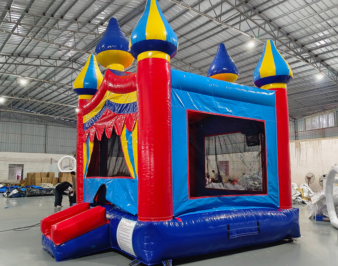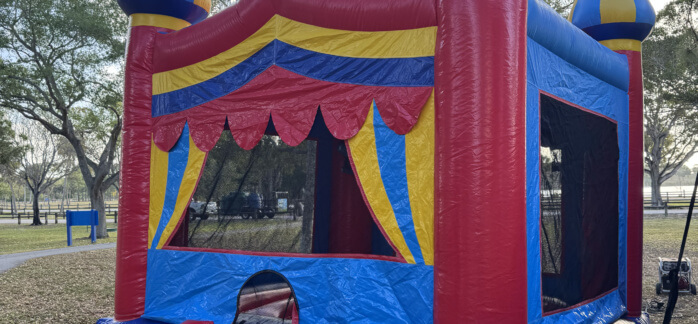 Step into the whimsical fun of the Big Top Bounce House, where every jump feels like a leap into the heart of the circus. With its vibrant colors and towering peaks, this inflatable marvel transforms any event into an exciting carnival. Guaranteed to delight kids and adults alike, it offers hours of bouncy joy and endless laughter, making it the ultimate centerpiece for any celebration. Has 2 basketball hoops for added fun!