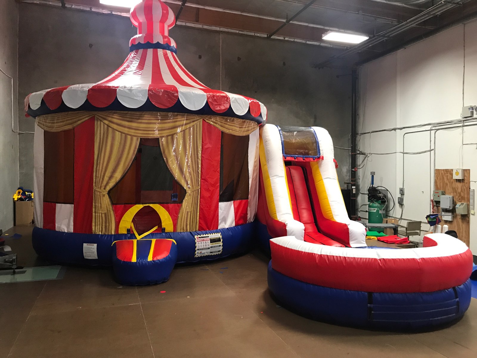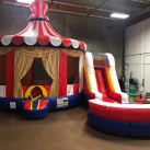 Step right up to the excitement with our 4-in-1 Carnival Combo Unit inflatable! This versatile attraction combines the thrills of a bounce house, slide, obstacle course, and basketball hoop for a complete carnival experience. Bring the festive atmosphere to your event with this all-in-one inflatable, ensuring a day filled with laughter and amusement for guests of all ages. Create lasting memories and a carnival vibe that will make your celebration truly unforgettable.