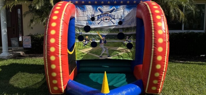 “Hit a home run at your next event with the Baseball Carnival Game from South Florida Bounce! This exciting game challenges players to test their hitting skills in a fun and interactive way. Perfect for birthday parties, school events, corporate gatherings, and carnivals in Palm Beach, Broward, Miami-Dade, and Martin County. Bring the thrill of the ballpark to your celebration—book today!”