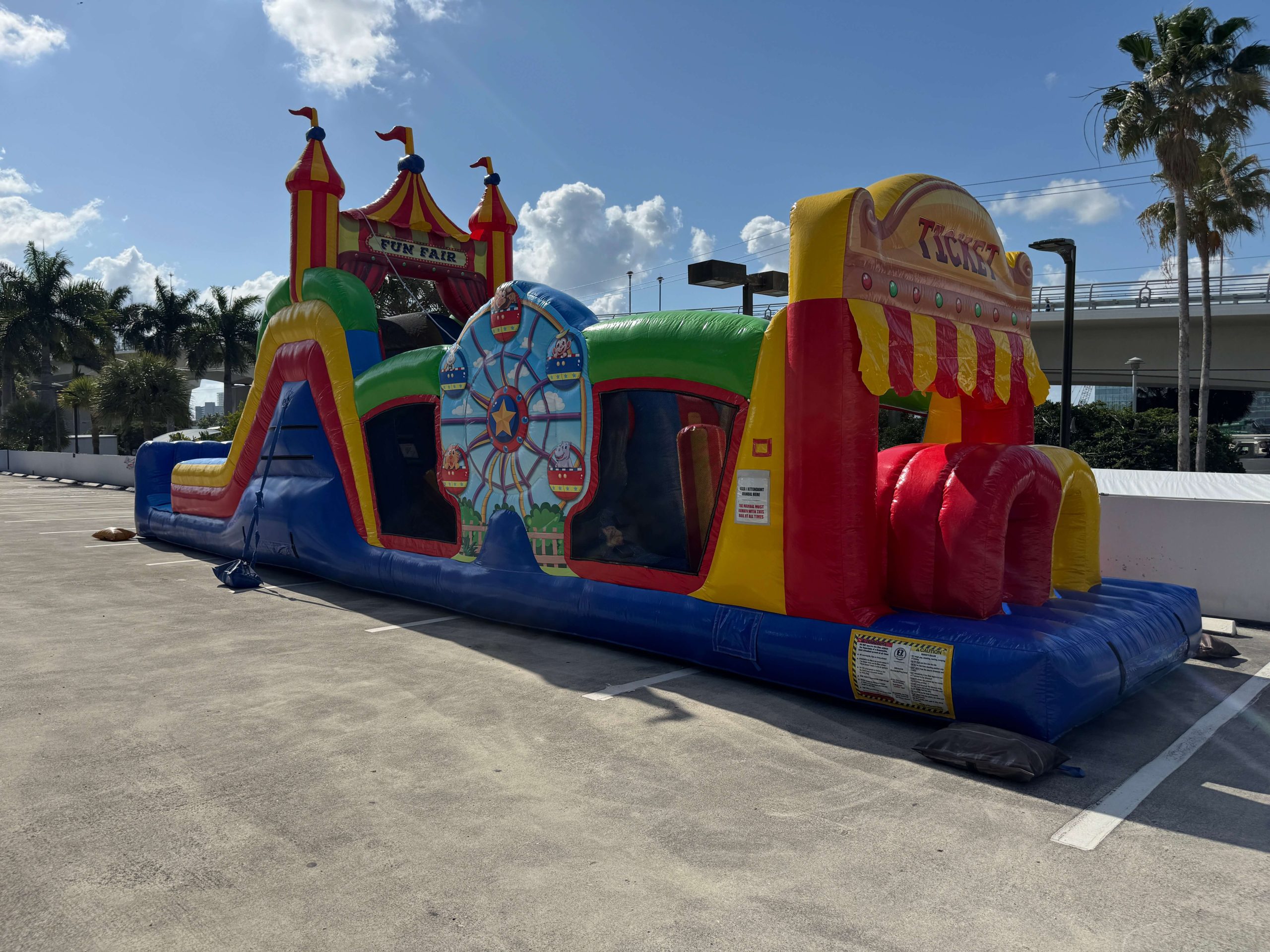 Bring the thrill of the carnival to your next event with our Carnival Obstacle Course – a high-energy favorite across South Florida! Packed with colorful challenges, tunnels, and slides, it’s a hit at school events in Plantation, birthday parties in Coral Springs, church festivals in Hollywood, community fairs in Wellington, and even corporate events in Deerfield Beach. Perfect for kids, teens, and even adults, this inflatable obstacle course adds friendly competition and tons of fun to any gathering. Rent the Carnival Obstacle Course today from South Florida Bounce and make your next event unforgettable!