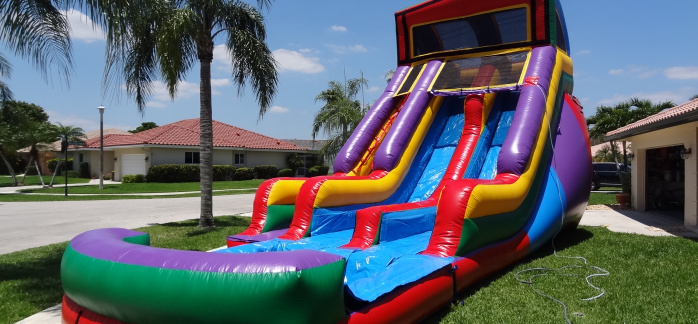 Ton’s of themes to choose from. Enjoy this 20ft Double lane Water Slide with pool at your next party….