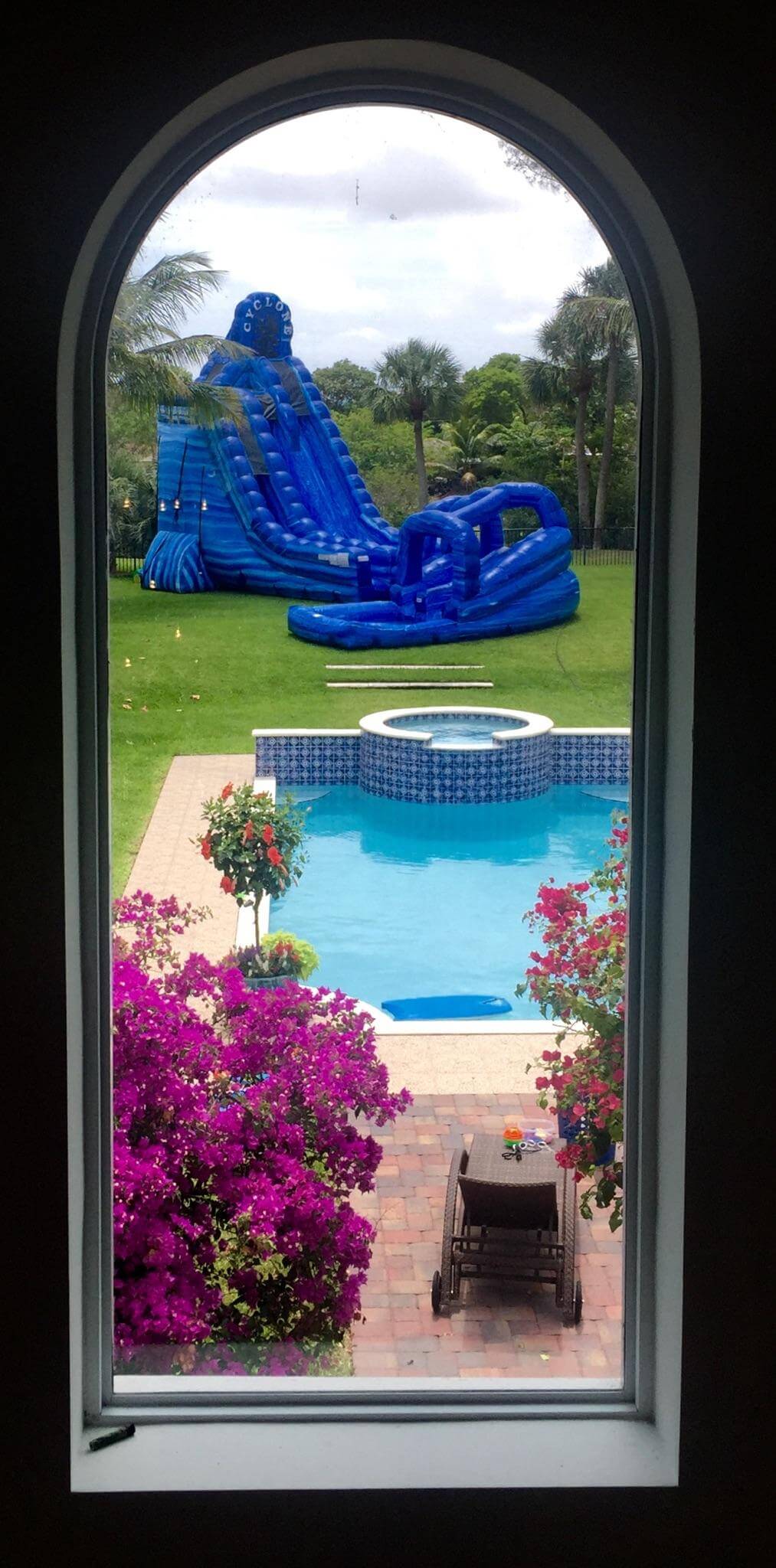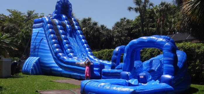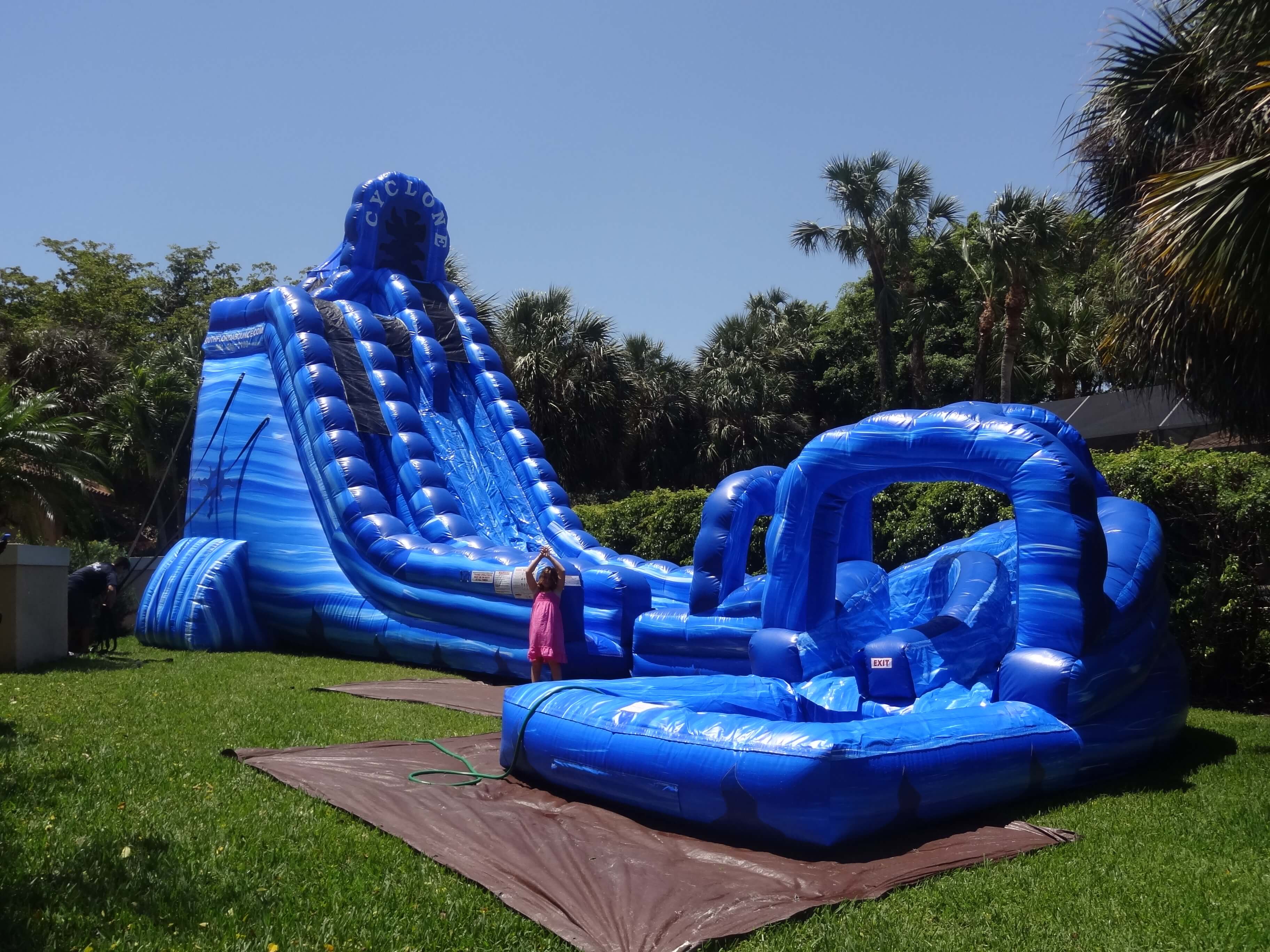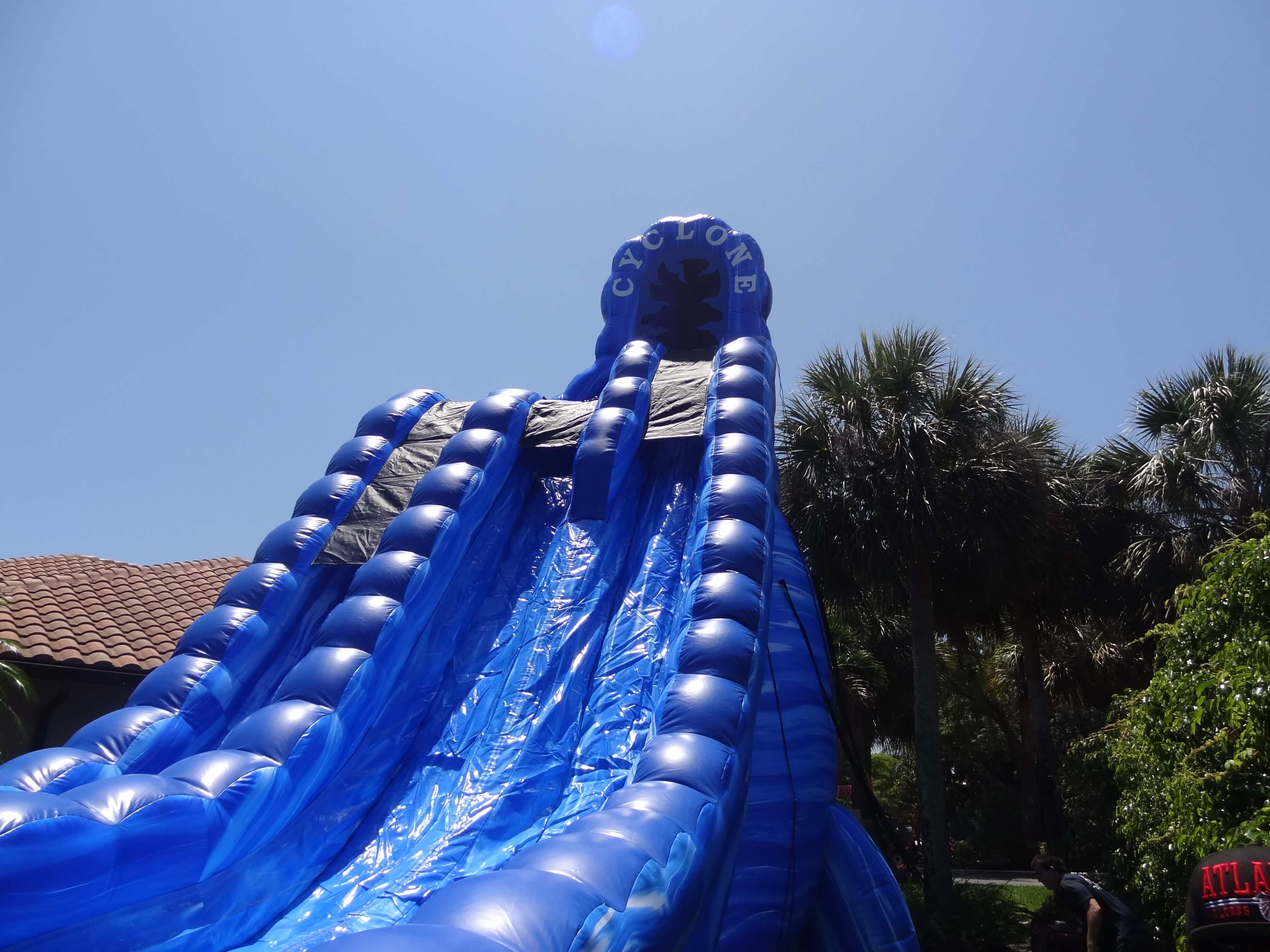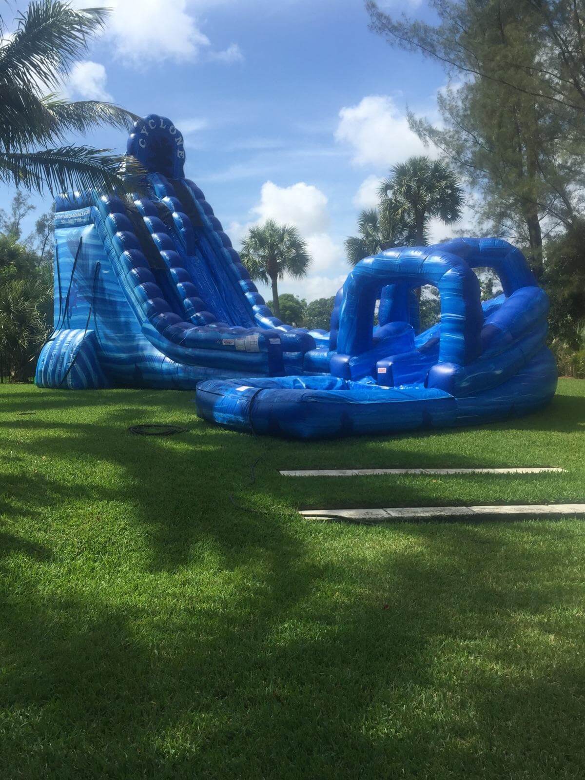 This is a brand new slide built exclusively for South Florida Bounce and Slide and is 30ft tall. Two sliding lanes at different heights one for the smaller kids and one for the bigger kids or the kid in you. Extremely Fun!! and FAST!