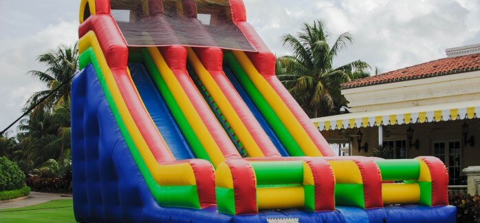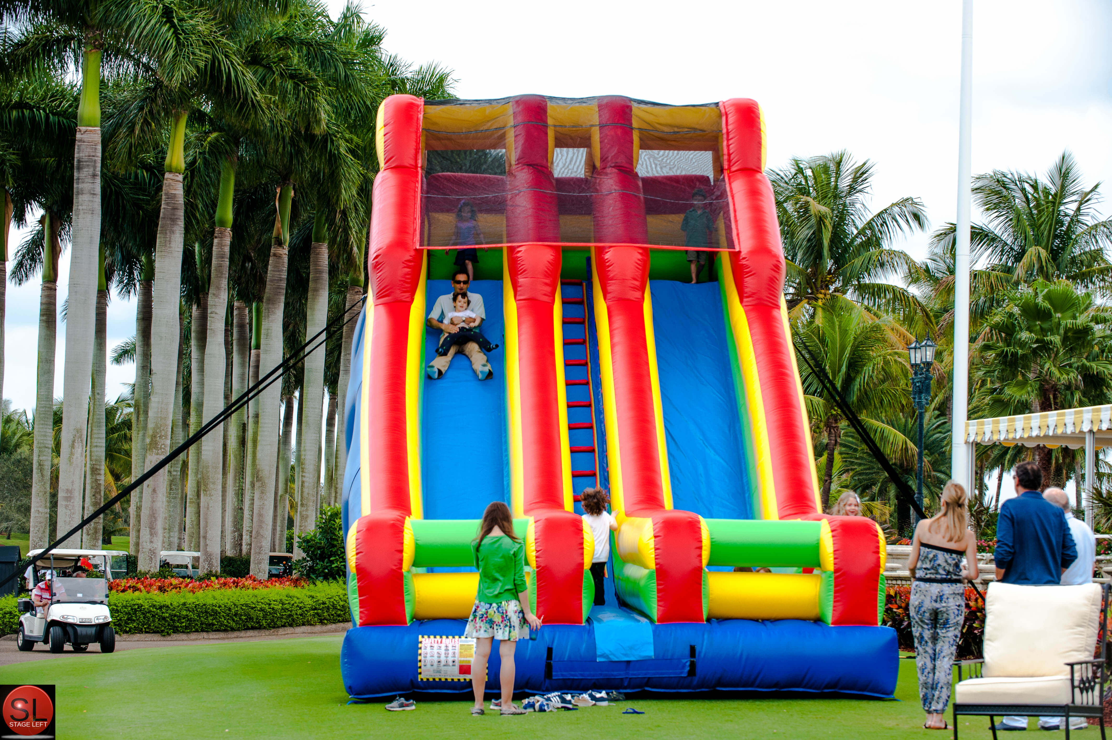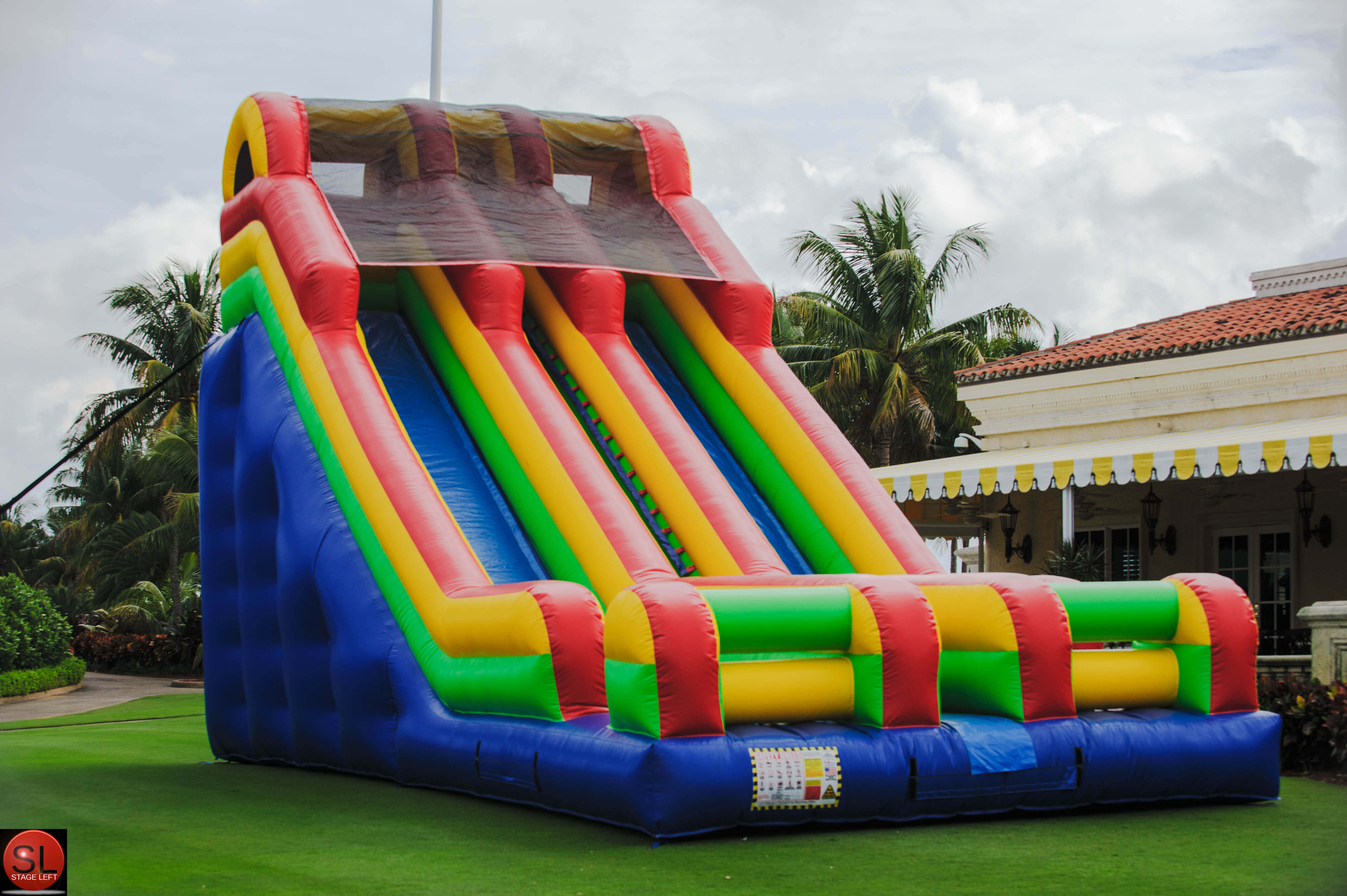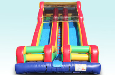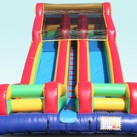 The 25ft Tall colorful Skyscraper dual lane slide is great for Kids and adults to get a thrill as they climb up and slide down this dual lane mammoth. May be rented DRY ONLY.