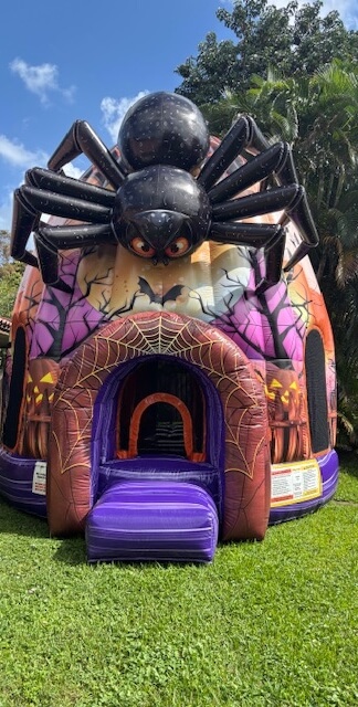Get ready to jump into the creepy, crawly fun of the Giant Spider Nest Bounce House! This inflatable spectacle features a spooky spider theme, complete with larger-than-life arachnid decorations and web-like design elements. Perfect for Halloween parties or any event that needs a touch of thrilling excitement, this bounce house offers endless bouncing joy within its eerie “nest.” Watch as kids and adults alike let loose, laughing and leaping in a haunted haven that’s delightfully daring and fantastically fun.