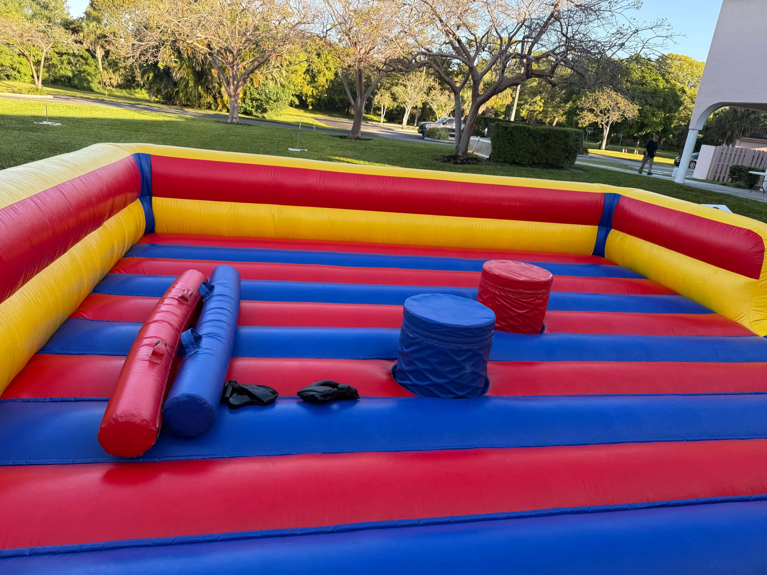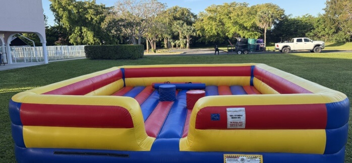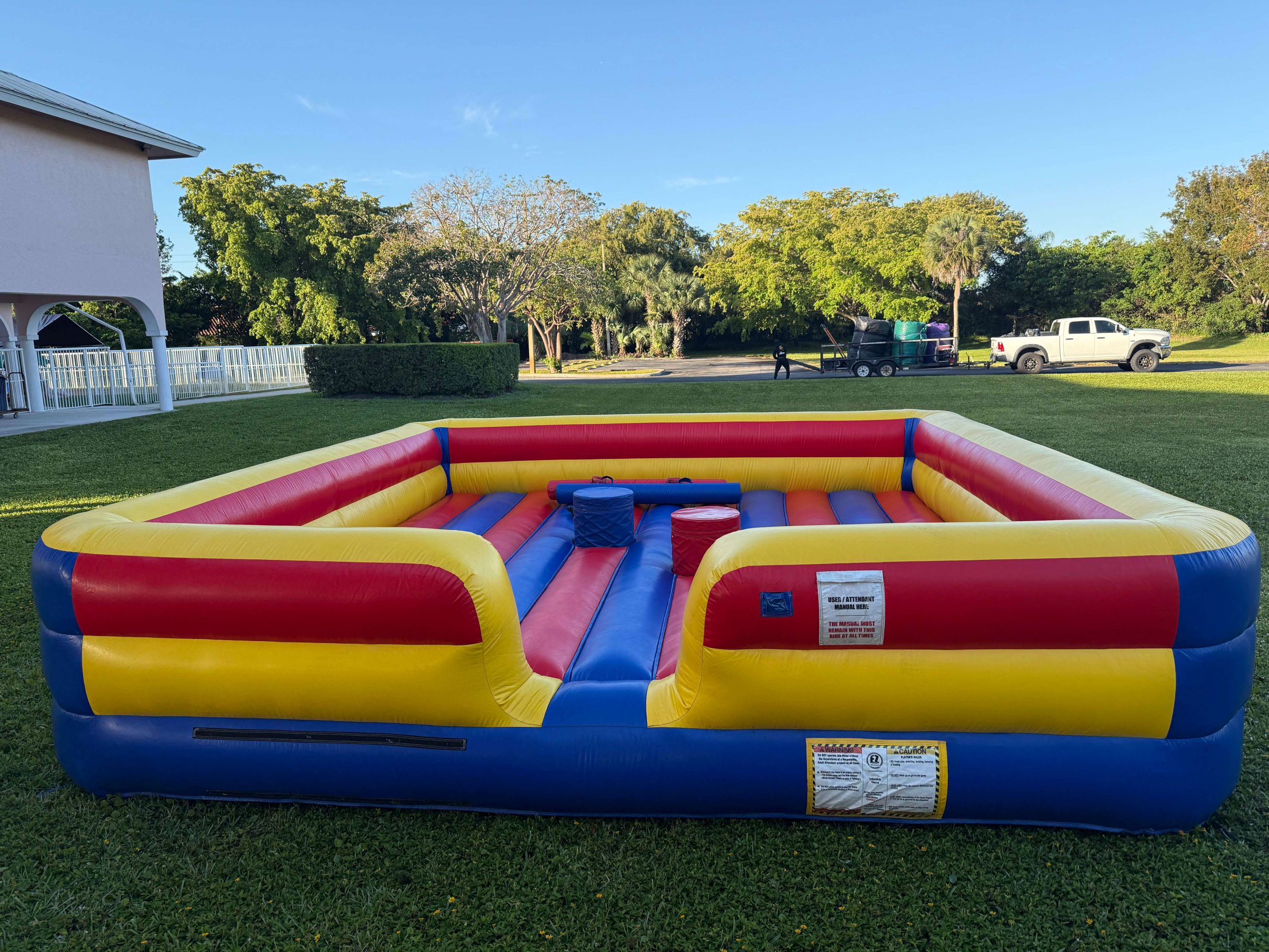 Make your next event a battle to remember with our exciting gladiator joust rental in South Florida! Ideal for teen parties, college events, backyard barbecues, and competitive gatherings. We deliver to Miami, Coral Springs, Parkland, and all of Broward and Palm Beach Counties. Book your gladiator showdown with SouthFloridaBounce.com!
