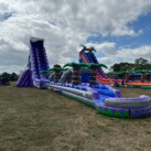 Looking for the ultimate water slide experience? The **Grape Crush Water Slide** from South Florida Bounce is a towering 40-foot-tall inflatable that brings non-stop fun to your next event! Perfect for summer parties, birthdays, or any outdoor gathering in Broward and Palm Beach counties, this vibrant purple slide will be the centerpiece of your celebration. Kids and adults alike will love the thrilling ride down its steep slope, ending with a splash in the refreshing pool below.