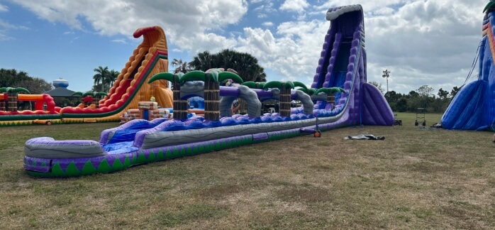 Grape Crush Water Slide, 40ft inflatable water slide rental, bounce house Broward County, Palm Beach water slide rentals, South Florida party rentals, outdoor summer party ideas, water slide for events.