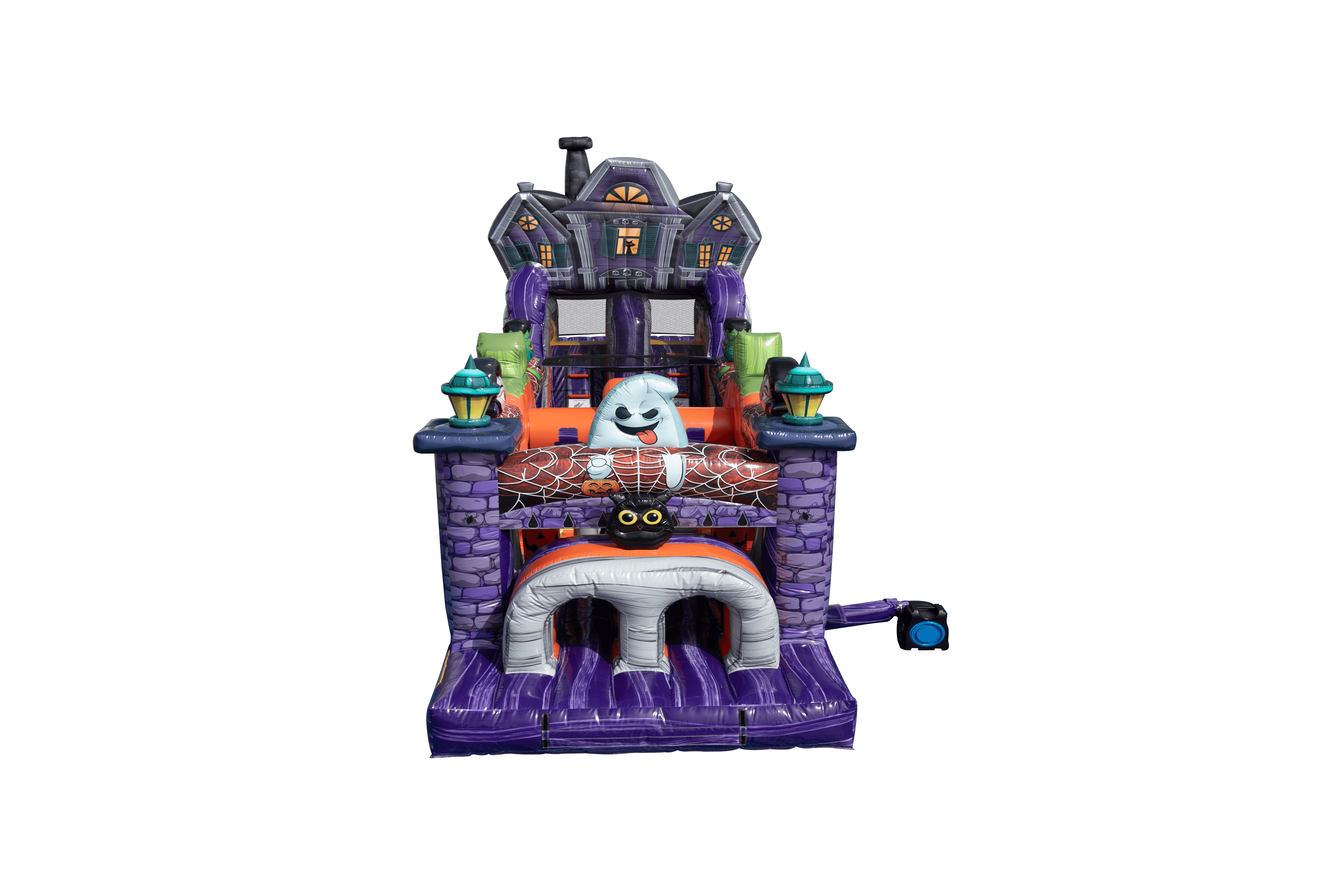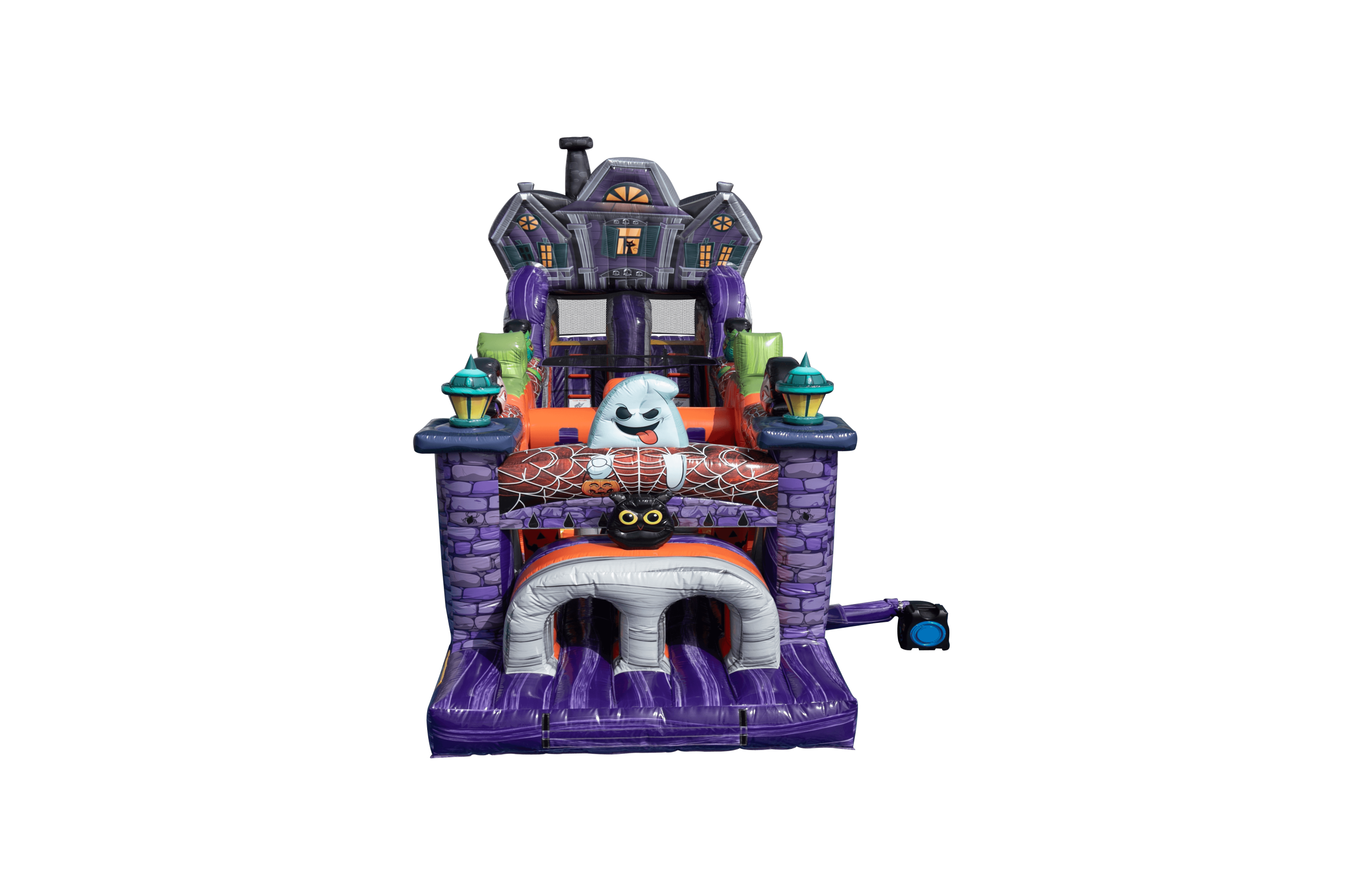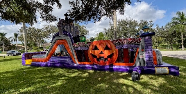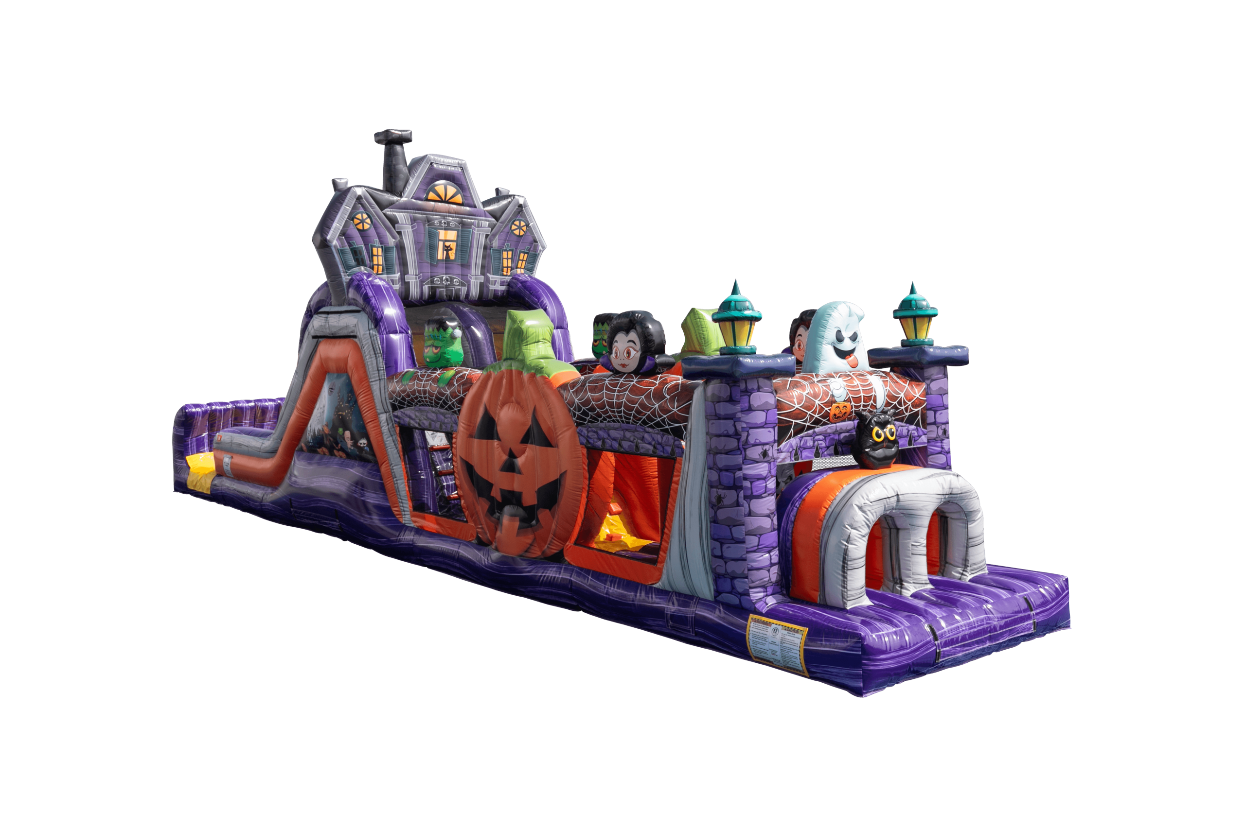 Dare to venture into the Haunted Obstacle Course! This thrilling inflatable is packed with ghostly twists, chilling turns, and spooky challenges at every corner. Perfect for any haunted-themed event, it promises a heart-pounding rush of fun and fright for all who brave its eerie paths. Get ready to test your courage as shadows loom and surprises await!