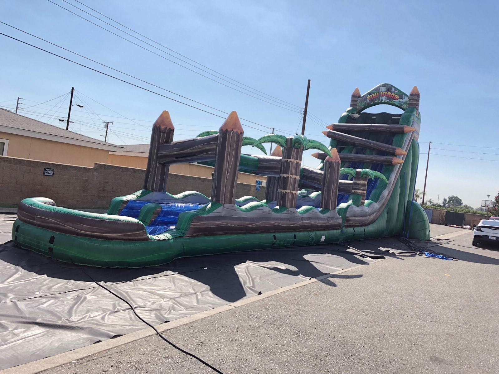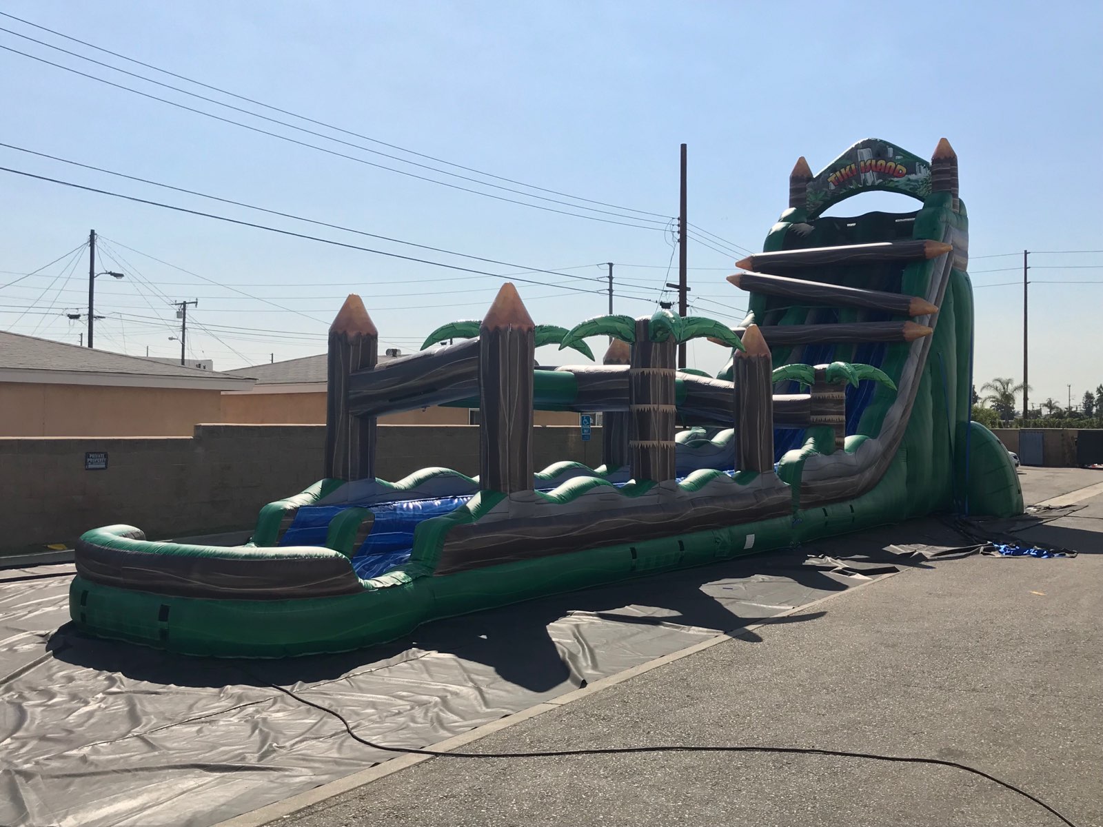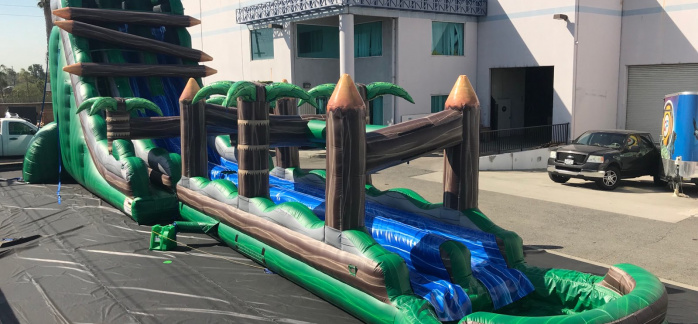 SPLASH DOWN! Our 30′ tall Log Flume is a 2 Lane water slide features a radical sliding angle that’s sure to get the adrenaline pumping as riders scream down this log flume themed slide. At the bottom, riders continue down 30′ of additional sliding fun before landing in the splash down pool. This water slide will blow your mind! This unit is perfect for schools, churches, summer camps and more! Great for teenagers and adults!