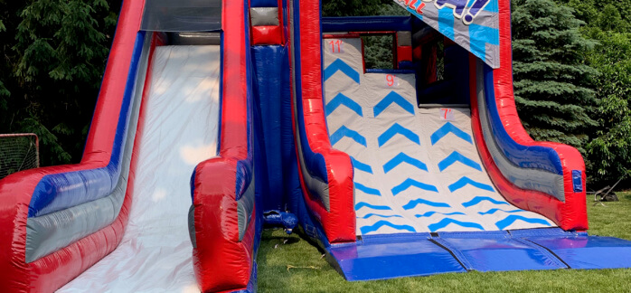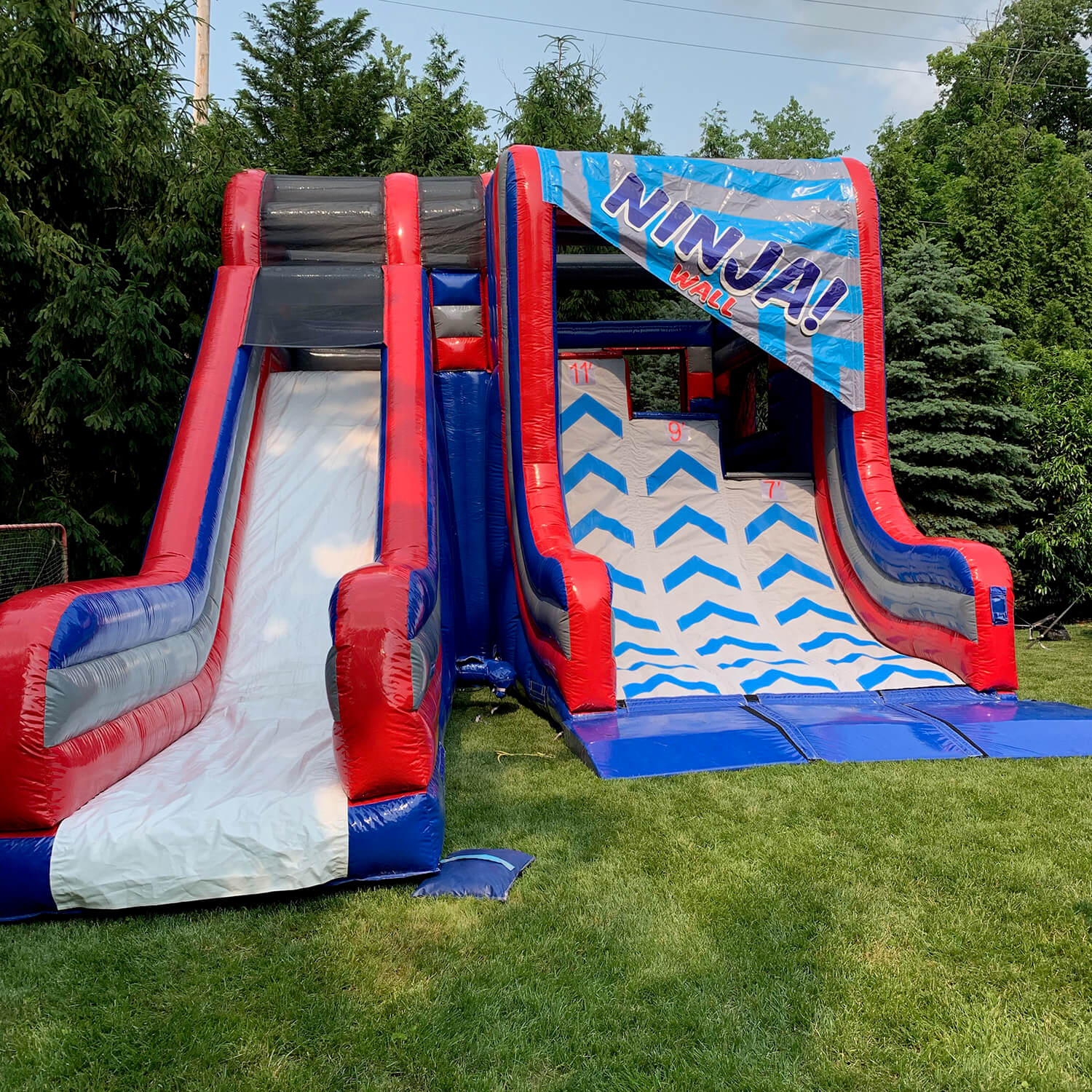“Take your event to the next level with the Ninja Wall from South Florida Bounce! Inspired by the popular American Ninja Warrior competition, this inflatable attraction challenges participants to conquer a steep wall and test their strength and agility. Perfect for team-building events, parties, festivals, and competitions in cities like West Palm Beach, Boca Raton, Fort Lauderdale, Miami, and Stuart. Available for rent across Palm Beach, Broward, Miami-Dade, and Martin counties. Book the Ninja Wall today and bring the excitement of American Ninja Warrior to your event!”