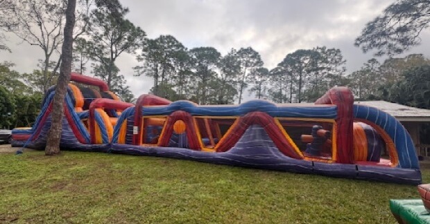 Rainbow Run obstacle course, 70ft inflatable obstacle course rental, bounce house rentals South Florida, obstacle course rental Palm Beach, Broward party rentals.