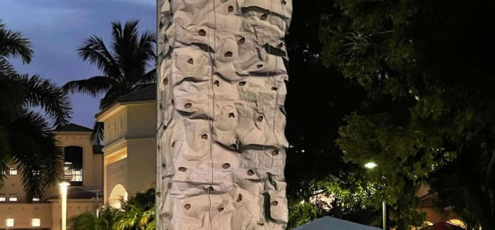 (30′ high) This fiberglass wall has 4 climbing sides that will challenge the beginners, as well as the experienced climbers. Safety features include an automated belay and hydraulic system that allows climbers to slowly descend from the top. This rock wall will accommodate a 35-lb. child up to a 220-lb. adult. 100% Fun 200% safe