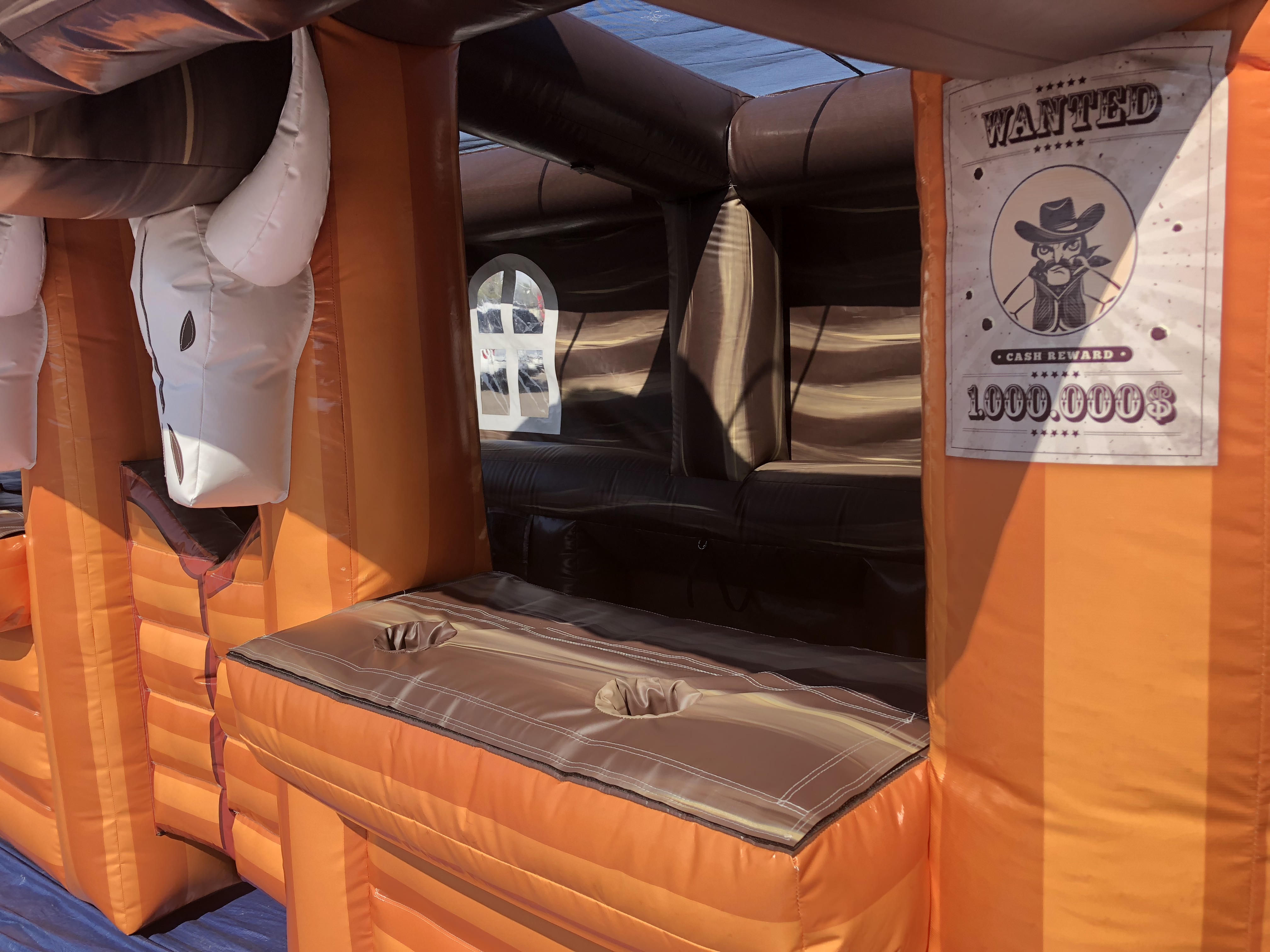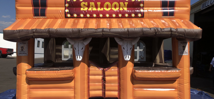 Not a bounce house! This inflatable Saloon bar can be used to keep the kids refreshed on a hot day or to serve your adult guests their grown-up beverages. Includes drink and bottle holders. 3 bar stools available. ($25 extra) A great add-on to your backyard party or Western night