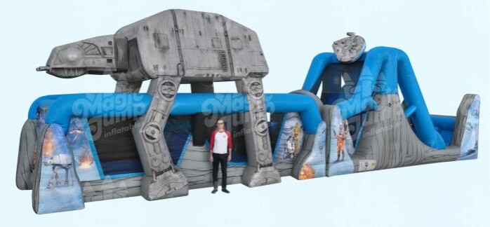 “Bring the galaxy to your next event with the **Star Wars Obstacle Course** from South Florida Bounce! Inspired by the epic Star Wars movie saga, this thrilling inflatable obstacle course lets kids and fans alike race through intergalactic challenges, featuring exciting obstacles like tunnels, slides, and climbing walls. Perfect for Star Wars-themed parties, school events, summer camps, and festivals, this inflatable guarantees an adventure worthy of the Jedi. Available for rent in cities like West Palm Beach, Boca Raton, Fort Lauderdale, Miami, Coral Gables, Hobe Sound, and Stuart. Serving Palm Beach, Broward, Miami-Dade, and Martin counties, the **Star Wars Obstacle Course** will transport your guests to a galaxy far, far away. Book today for an unforgettable, out-of-this-world experience!”Can also be set up wet with waterslide!