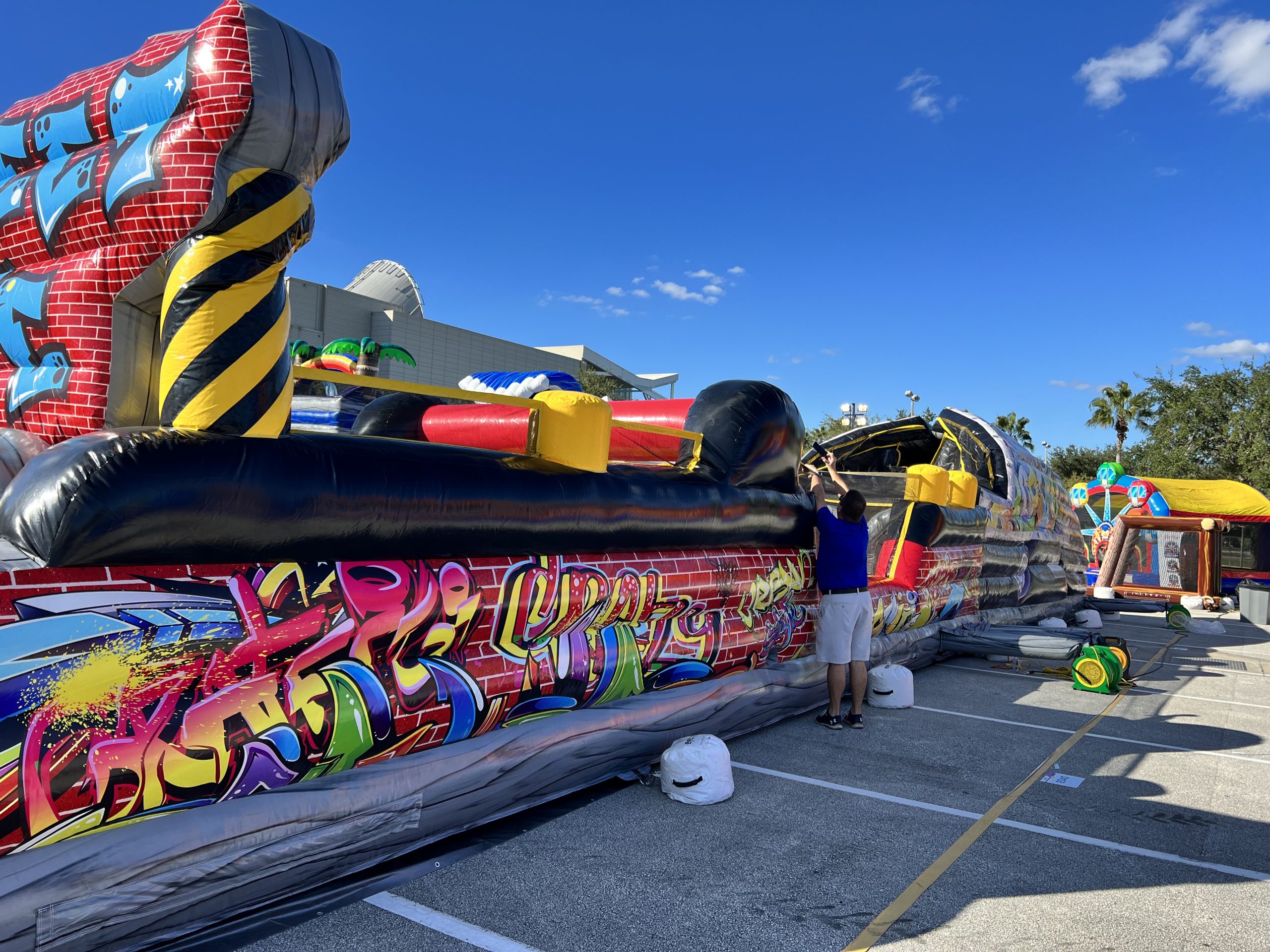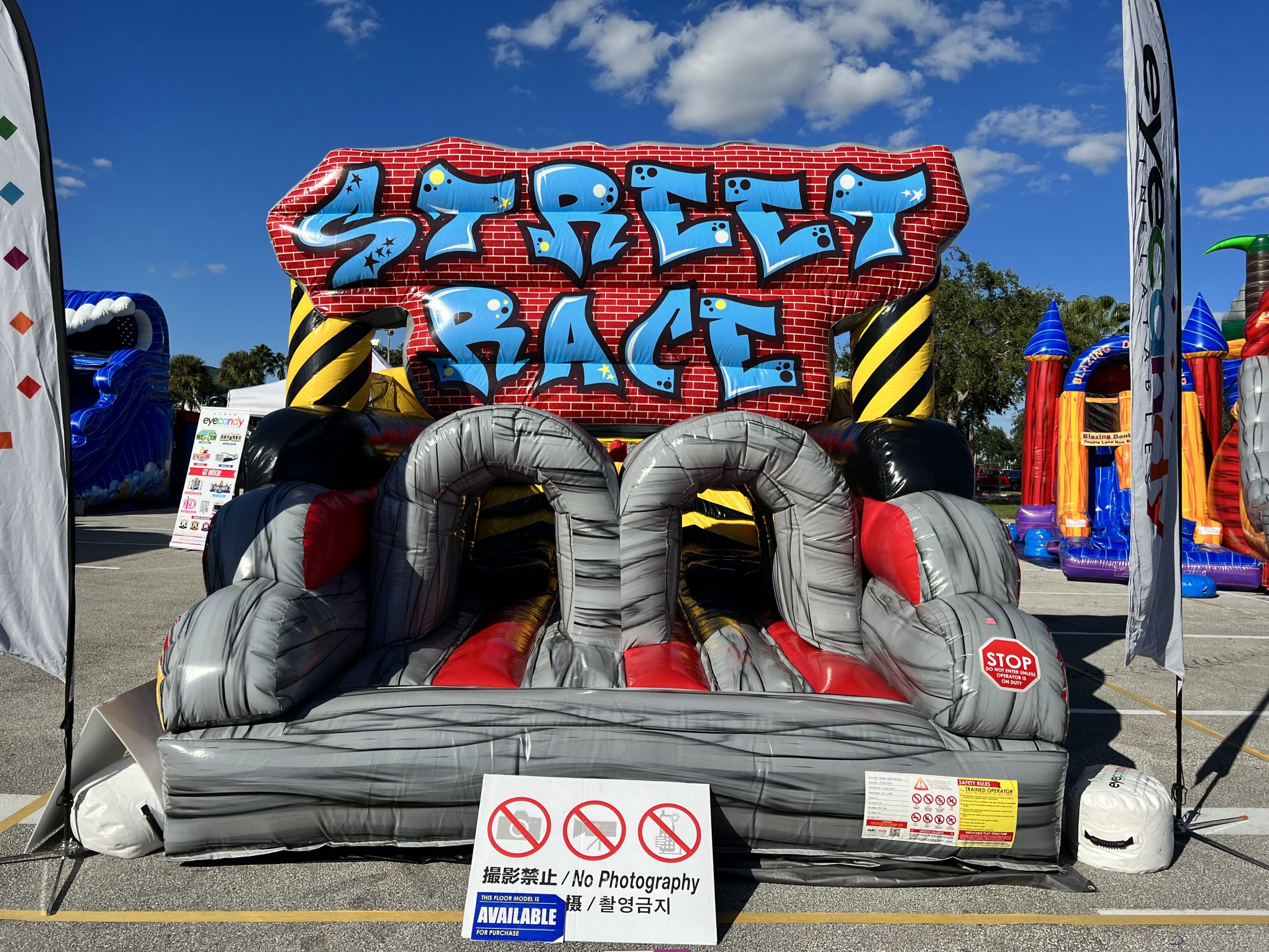 Challenge your friends to a street race on this immaculate urban parkour themed obstacle course. Dash through the construction zone, dodge between city taxi cabs and climb over and slide over the giant graffiti truck.”Rev up the excitement with the Street Race Obstacle Course from South Florida Bounce! This fast-paced inflatable obstacle course is designed for speed and agility, featuring tunnels, slides, and challenging barriers for a thrilling race to the finish line. Perfect for kids’ parties, summer camps, school events, and festivals, the Street Race Obstacle Course is a hit for both competitive and casual fun. Available for rent in cities like West Palm Beach, Boca Raton, Fort Lauderdale, Miami, Coral Gables, Hobe Sound, and Stuart. Serving Palm Beach, Broward, Miami-Dade, and Martin counties, this obstacle course will bring high-speed excitement to your next event. Book now and let the race begin!”