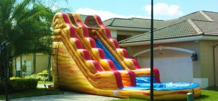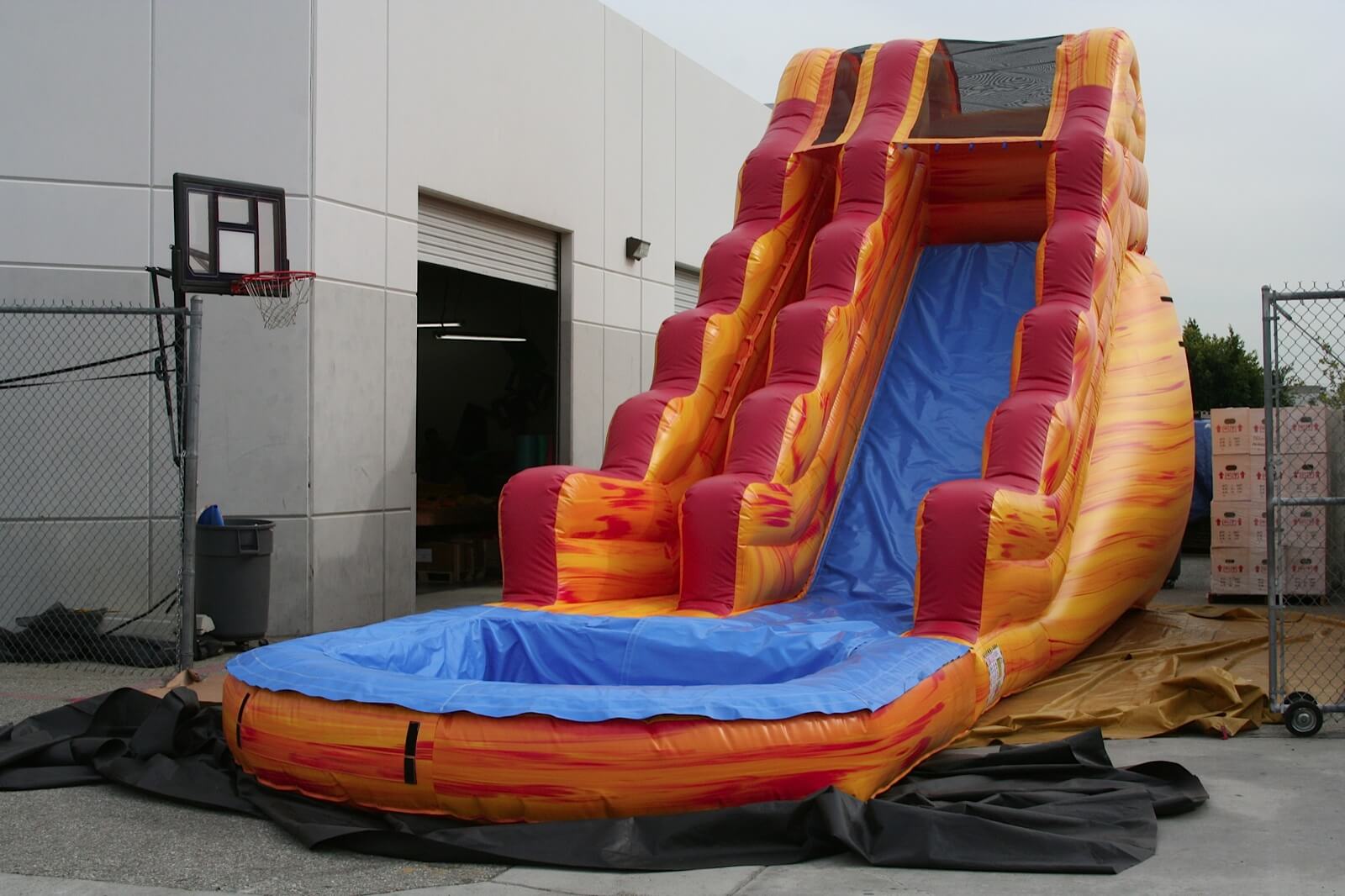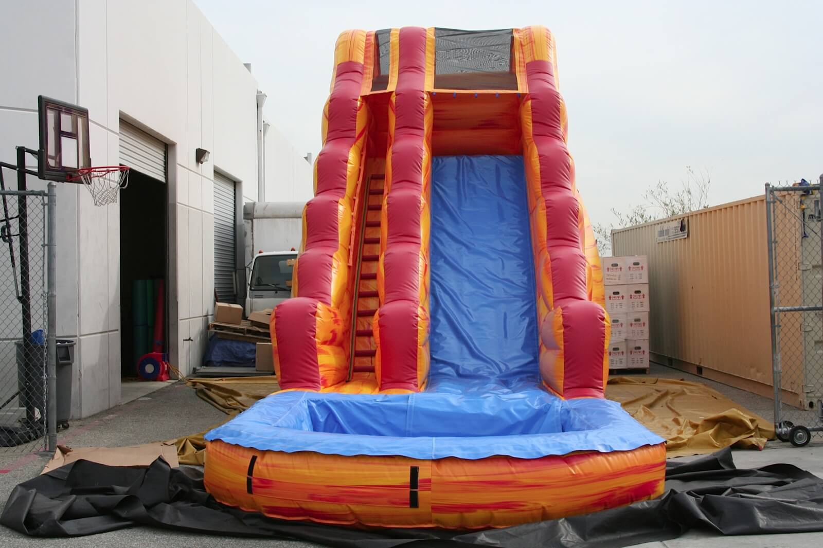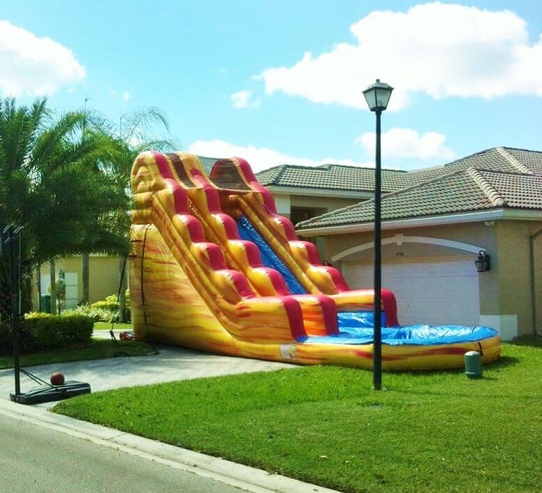 Enjoy this large beautifully colored Sunset Splash 20ft tall water slide at your next event. A super-fast ride into a nice cool pool. For ALL ages.