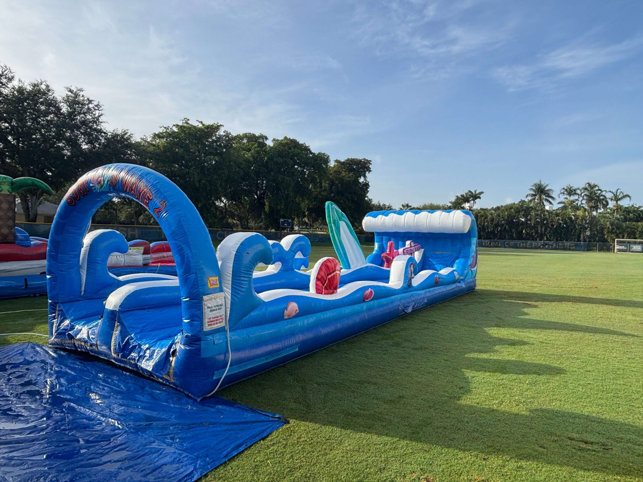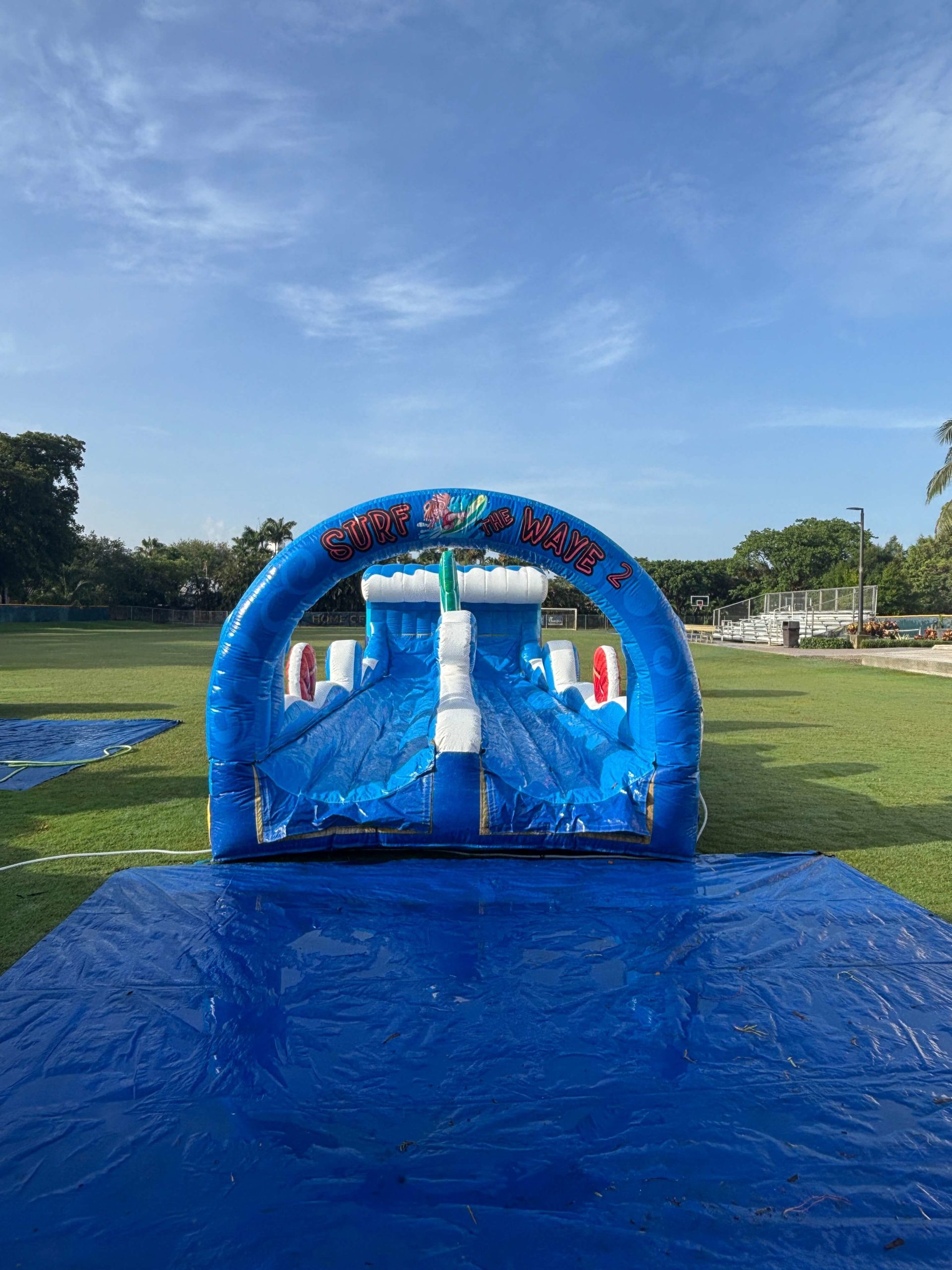 Get ready to ride the tides with the Surf The Wave Slip n Slide! This inflatable brings the thrill of a watery adventure to your backyard. Dash and dive through a slippery, wavy path for a rush of excitement and fun. Ideal for hot days and perfect for kids and adults alike, this rental promises a splashing good time from start to finish. Just inflate, add water, and let the surf sessions begin!