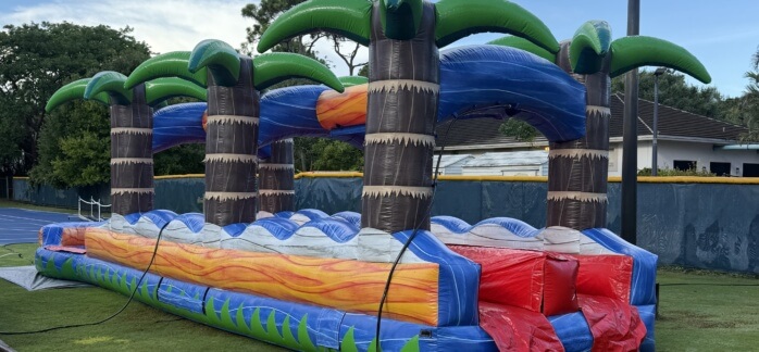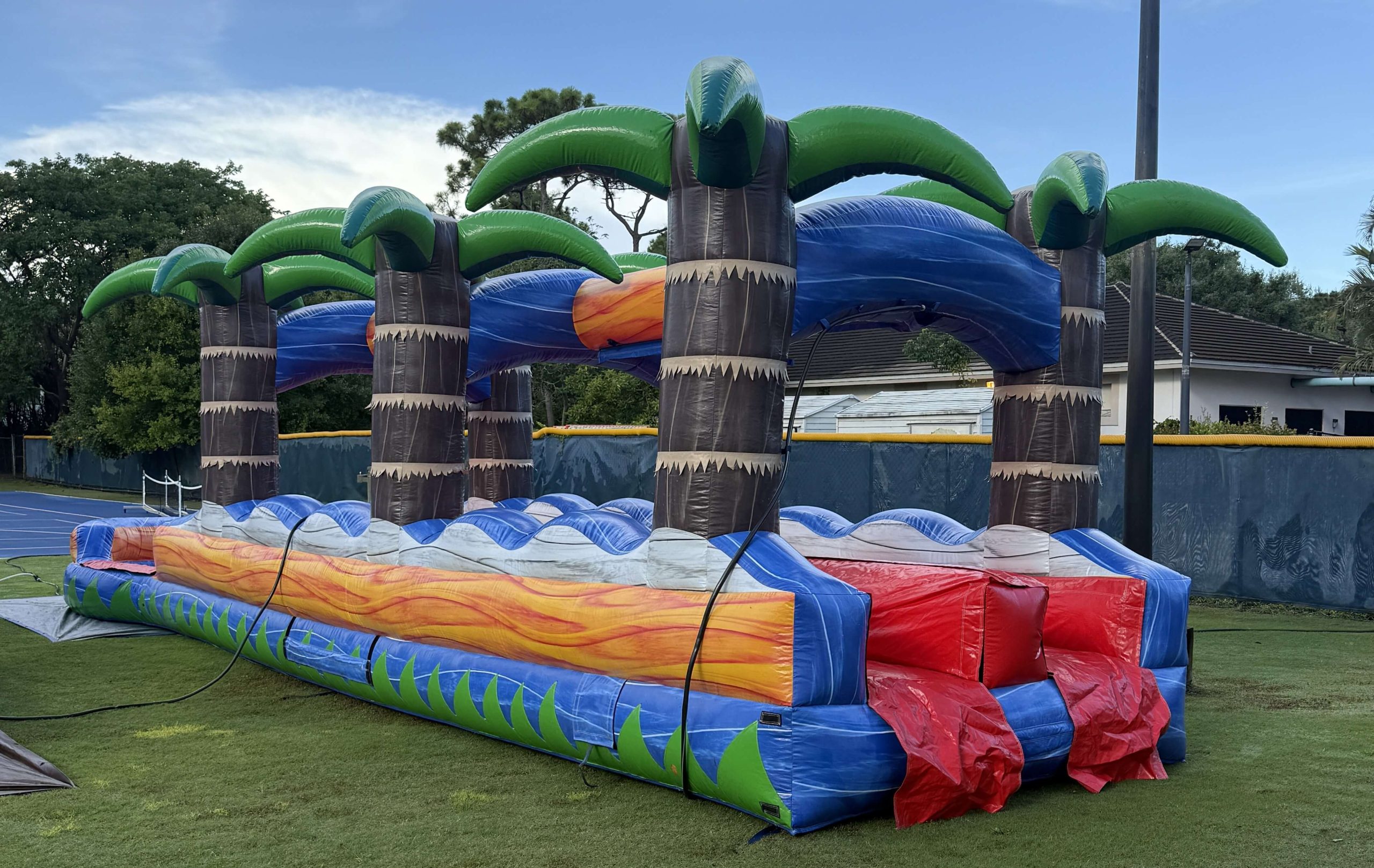 Get ready to dive into non-stop fun with the Tropical Fireblast Slip N Slide DL! This rental features a vibrant, tropical-themed design packed with colors that ignite excitement. Dual lanes let you and a friend race side by side, sliding through refreshing jets of water that keep the action cool and thrilling. Perfect for sunny days and summer parties, this slip n slide guarantees hours of splashing fun in the sun. Your ultimate destination for backyard adventures awaits!