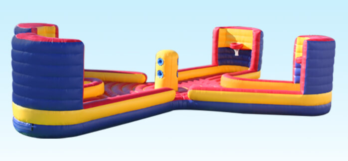 Introducing South Florida Bounce and Slides Tug and Dunk Game. You and your competitor sprint toward the basketball hoop on each end to be the first to dunk a basket. But the catch is both opponents are connected via a bungee cord that runs through the middle! Only one can succeed. Will it be you? 4 Player Game Check out the video!
